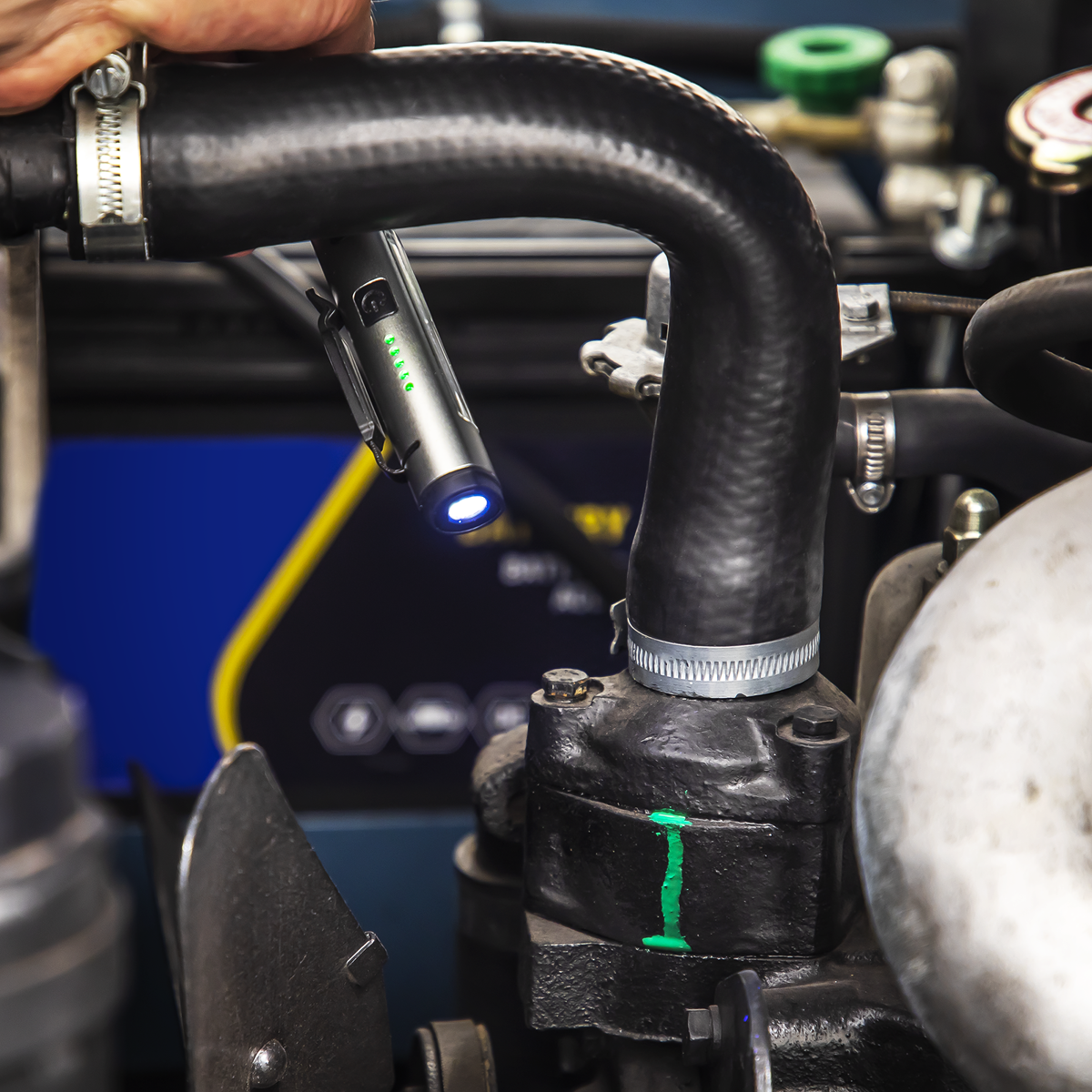 • Produces an ultraviolet light for fault finding with fluorescent dyes used in leak detection.