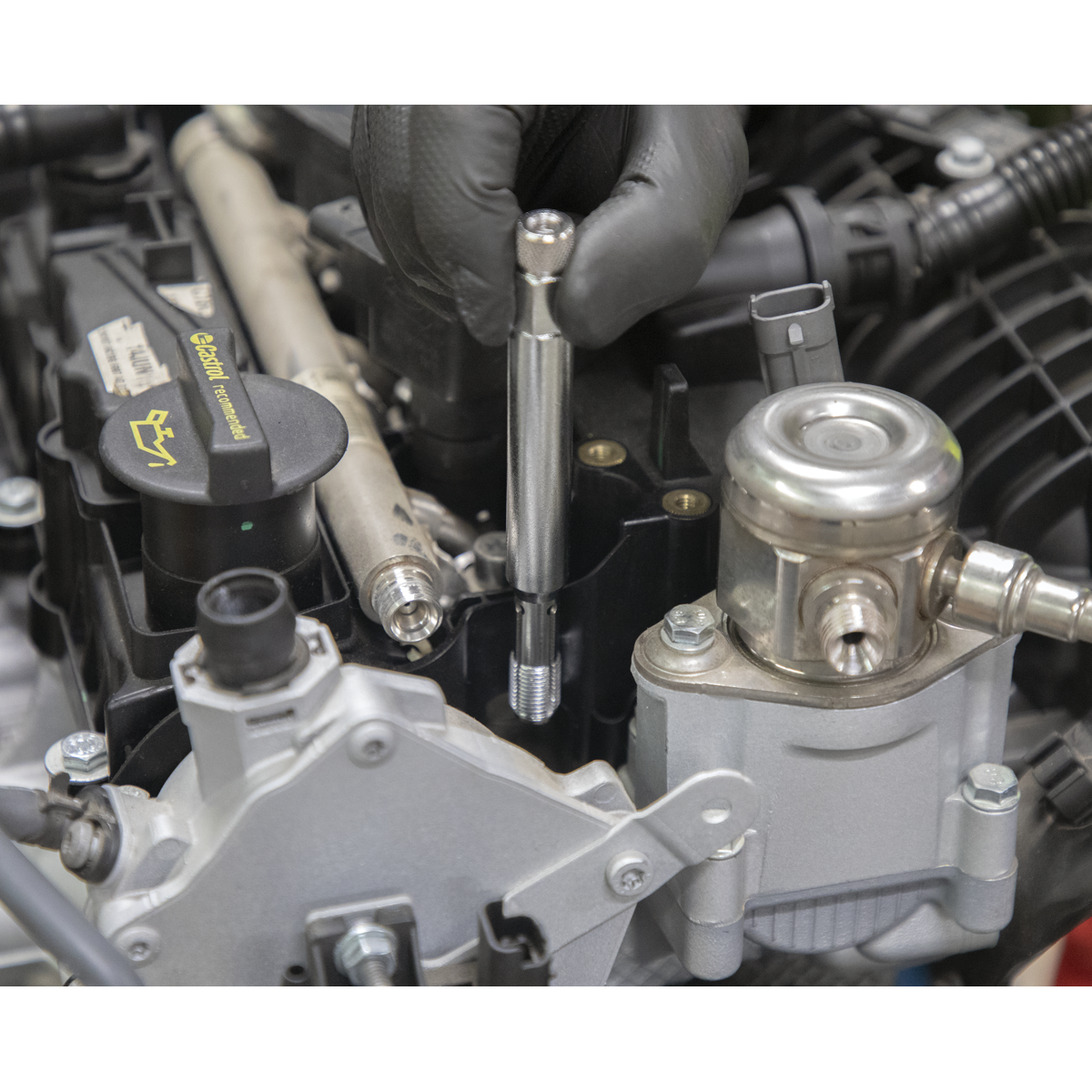 • Unique design allows the tool to be passed through the plug thread into the combustion chamber, then expanded to the correct size starting on the inner, undamaged threads.