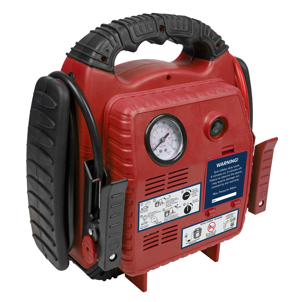 - Features independent on/off switch which allows the positive clamp to be connected without the risk of sparking and an integral LED worklight for use at night.