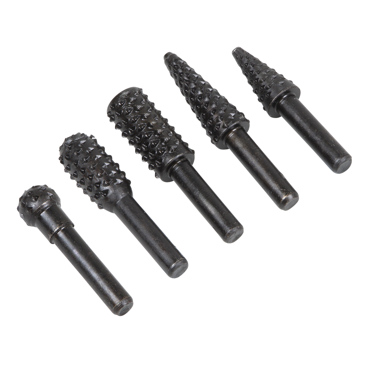 • UNIVERSAL - 5-piece set of rotary burr rasp drill bits manufactured from 45 carbon steel.