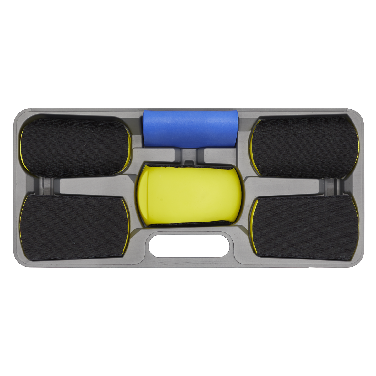 • Comprehensive kit of resilient, rectangle style concave and convex sanding blocks with hook-and-loop surfaces and a flexible tear drop sanding block.