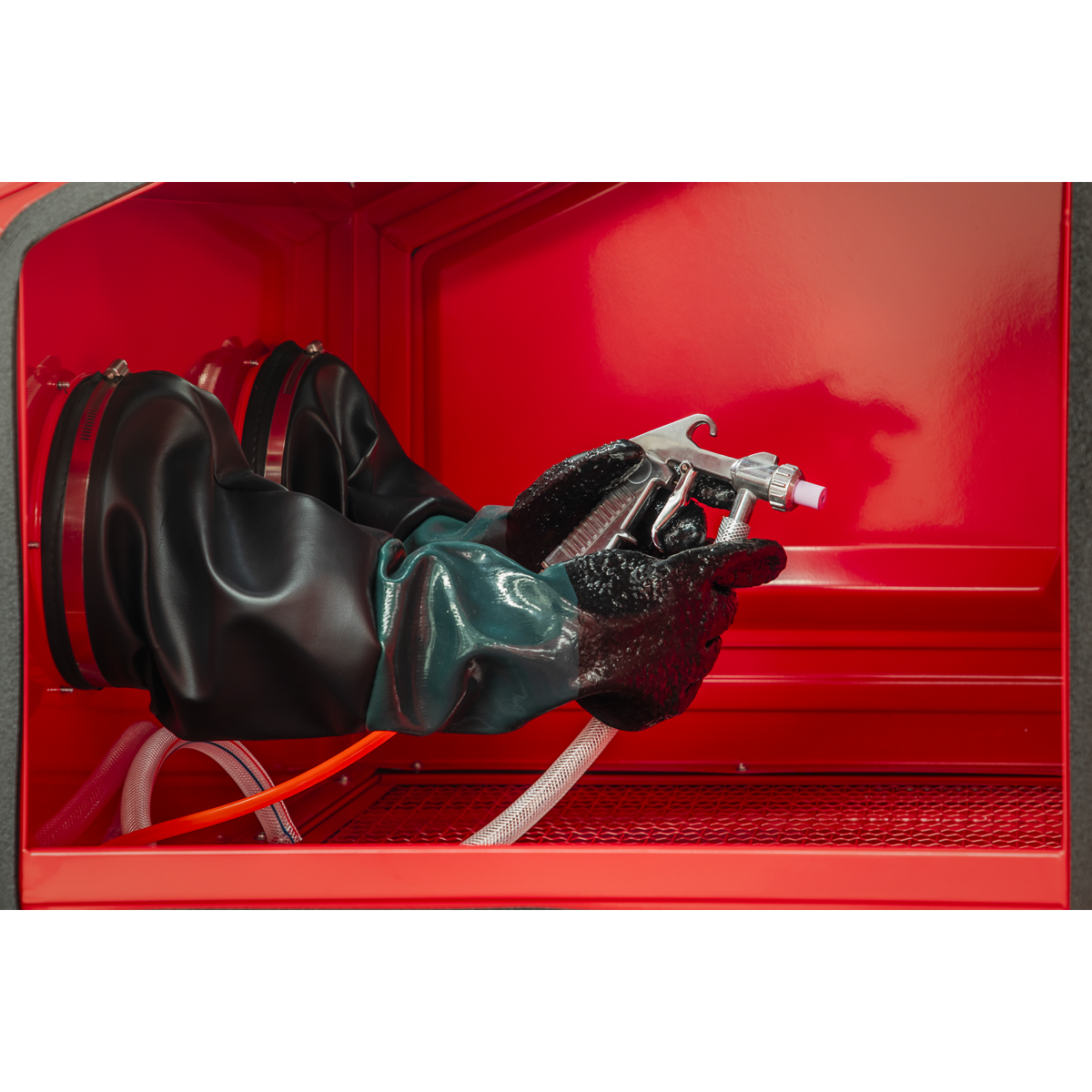 • Heavy gauntlets provide hand protection and each cabinet is supplied with sand blasting gun and four ceramic nozzles.