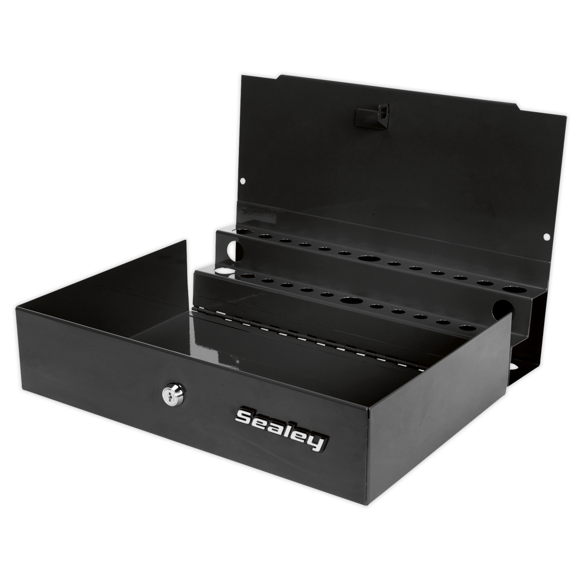 • Lockable storage unit for long tools, such as pry bars, long reach screwdrivers and breaker bars.