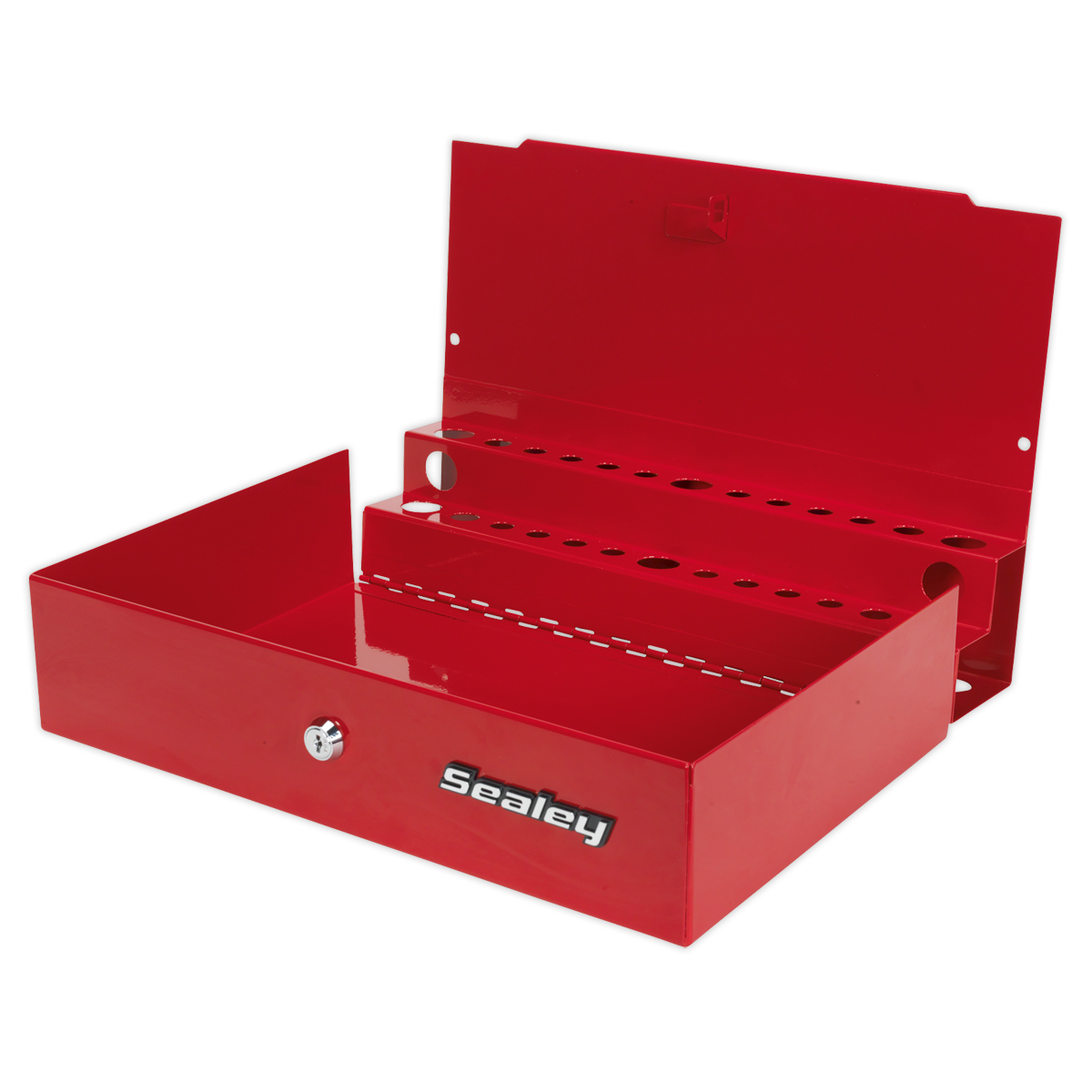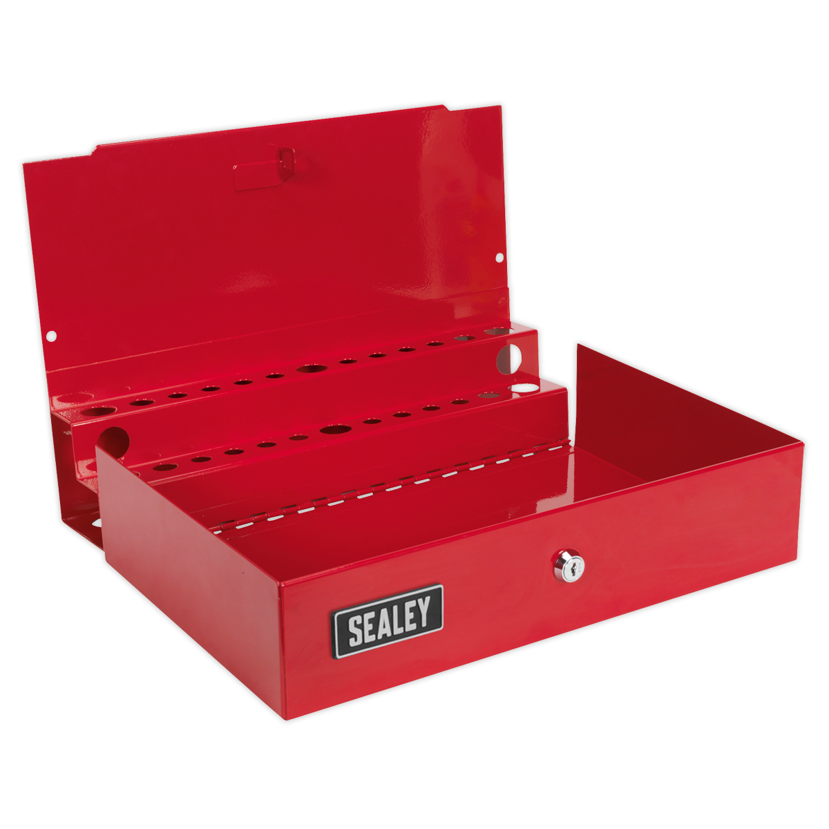 • Lockable storage unit for long tools, such as pry bars, long reach screwdrivers and breaker bars.