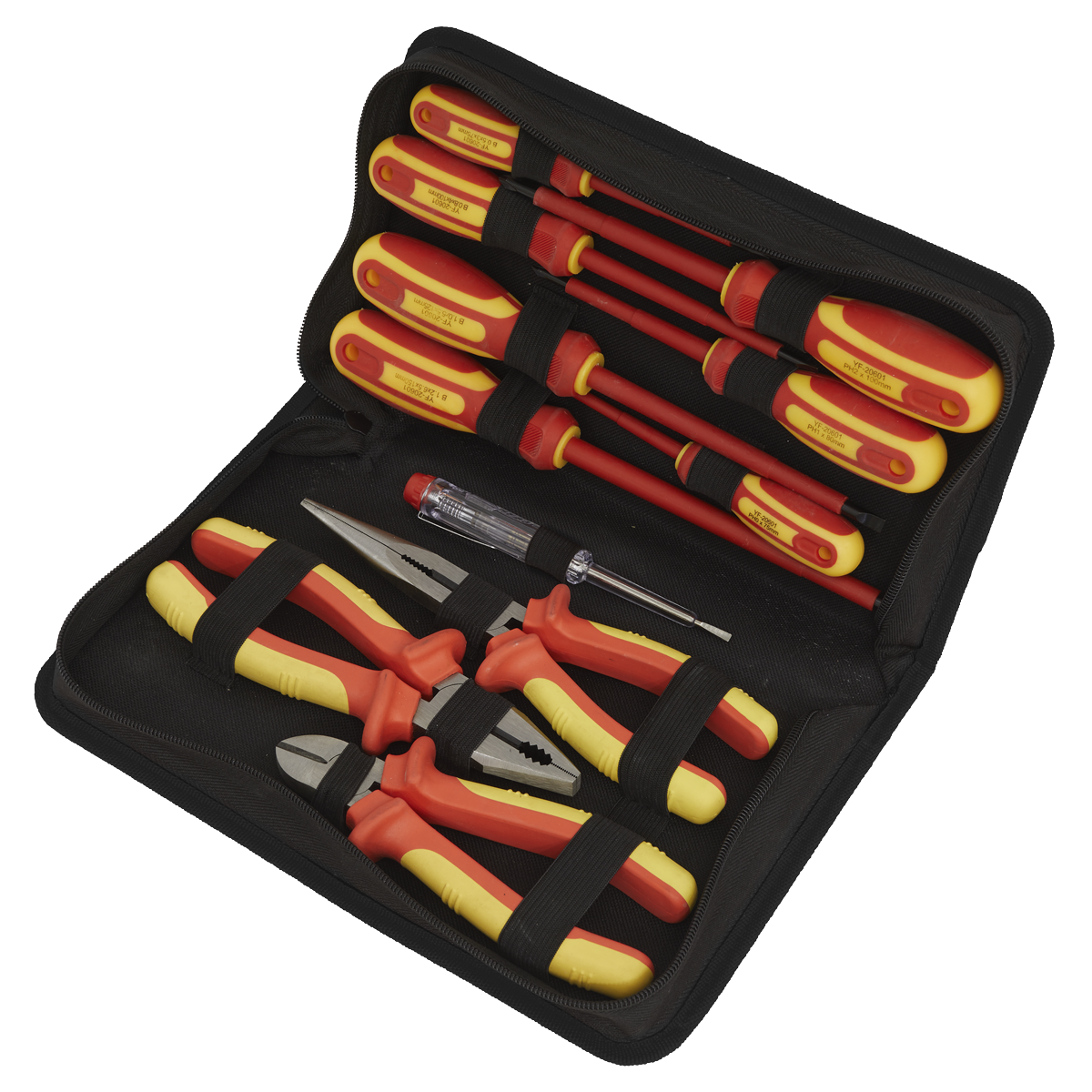 • Contents: Screwdrivers: Slotted - 3 x 75mm, 4 x 100mm, 5.5 x 125mm, 6.5 x 150mm, Phillips - #0 x 75mm, #1 x 80mm, #2 x 100mm, 175mm Combination Pliers, 150mm Side Cutters, 200mm Long Nose Pliers, Voltage Tester.