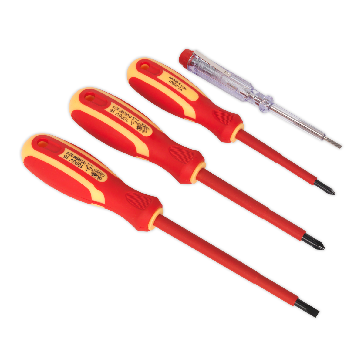 • Contents: Phillips; #1 x 80, #2 x 100mm, Slotted; 5.5 x 125mm, Mains Tester; 3 x 140mm.