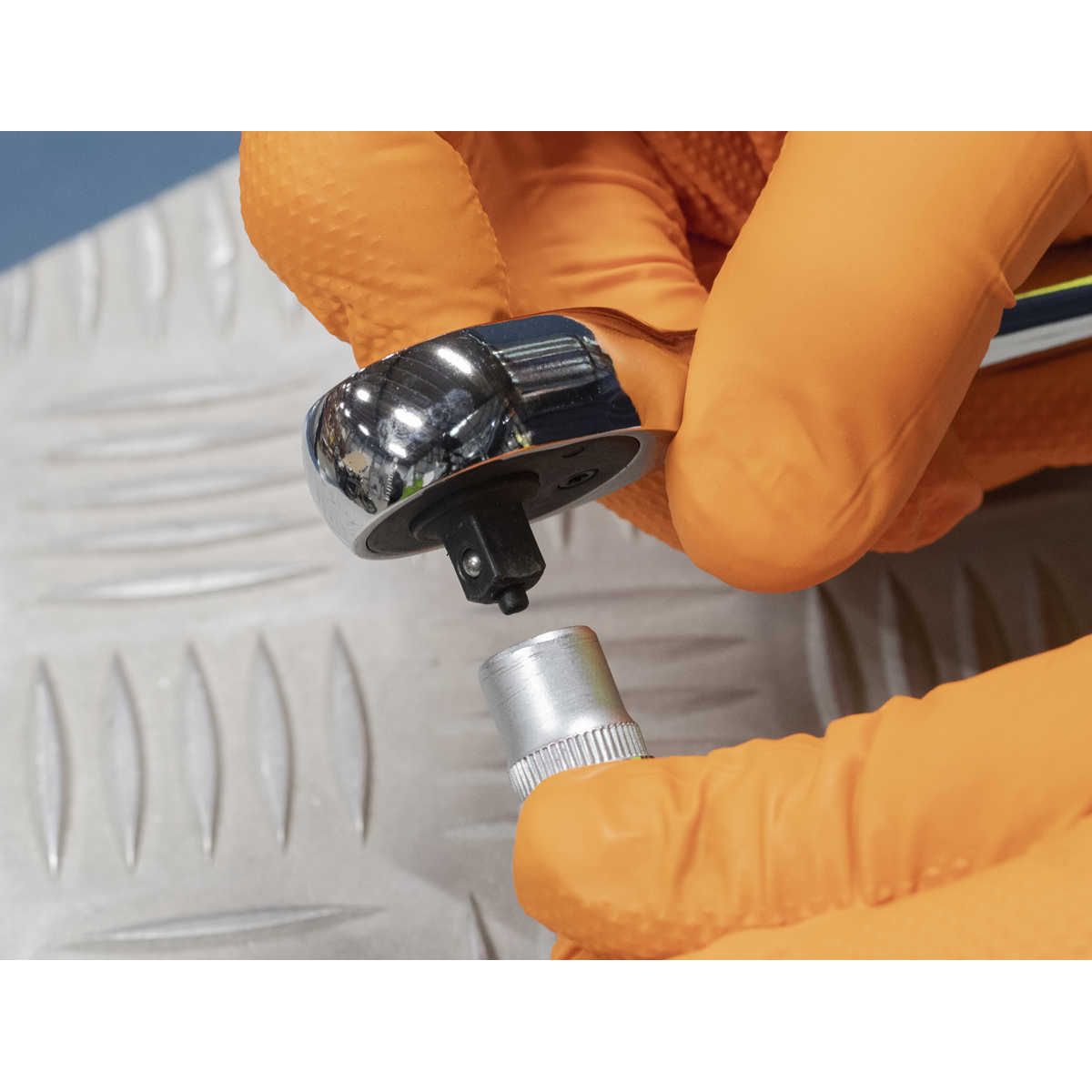 • ANTI-SLIP COMFORT GRIP – With push-button quick release for ease of changing sockets.