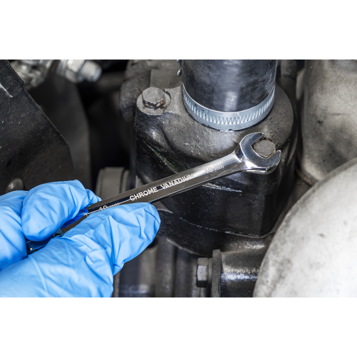• DOUBLE ENDED COMBINATION SPANNER - 12pc set including sizes: 8, 9, 10, 11, 12, 13, 14, 15, 16, 17, 18, 19mm.
