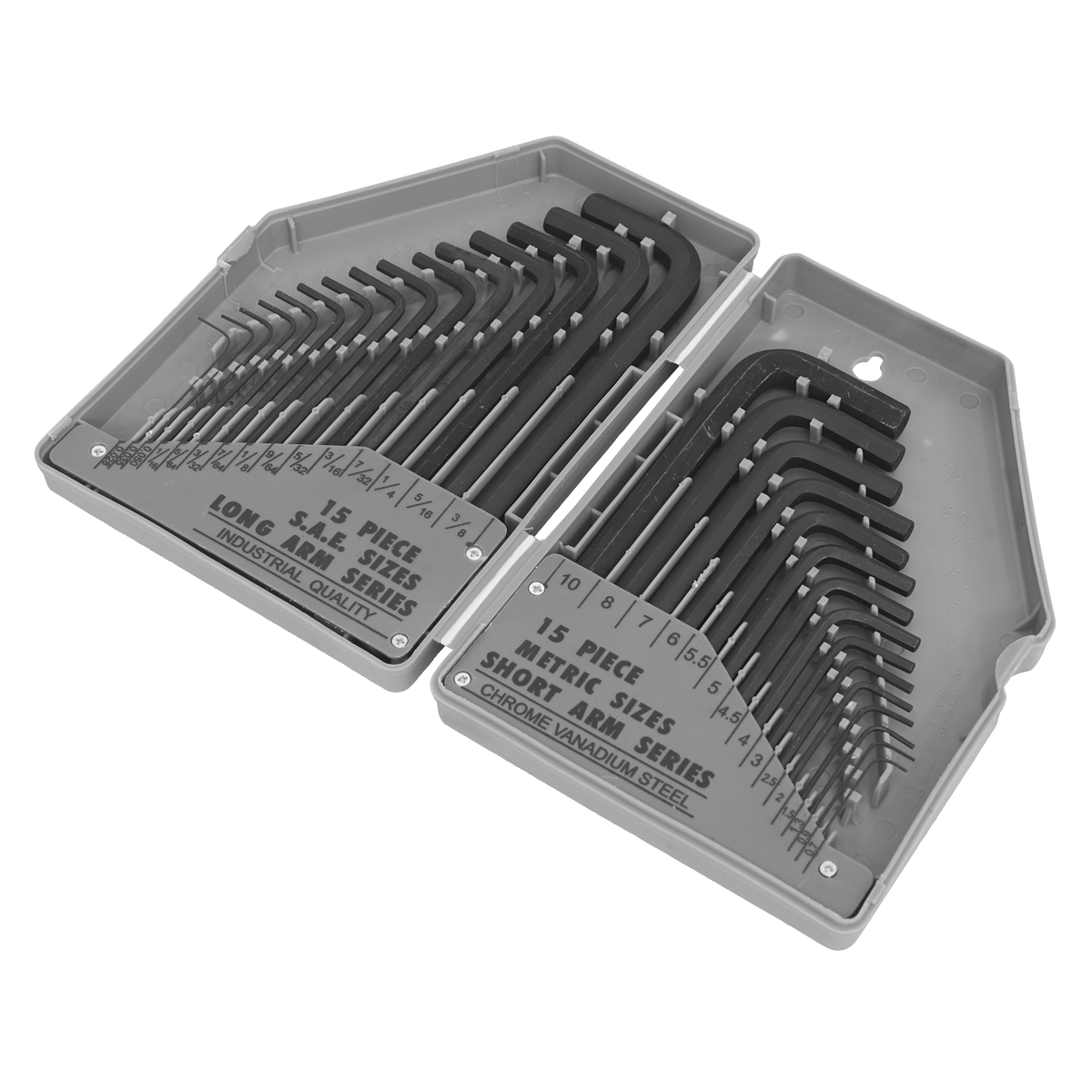 • Comprises fifteen long-arm Imperial keys and fifteen short-arm Metric keys.