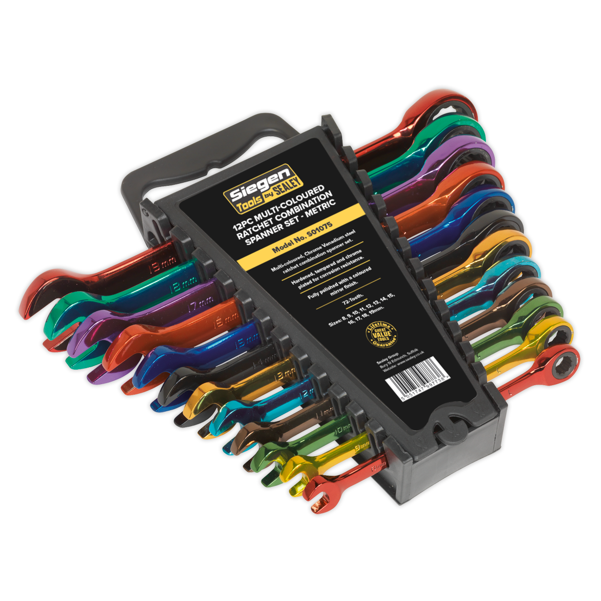 Siegen Multi-Coloured Combination Ratchet Spanner Set 12pc