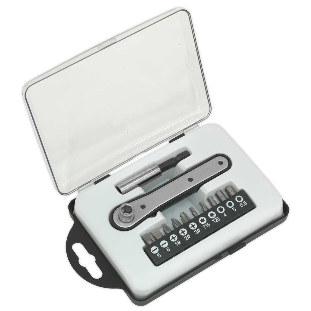 • Includes popular bits in holder and a magnetic extension bar/bit holder.
