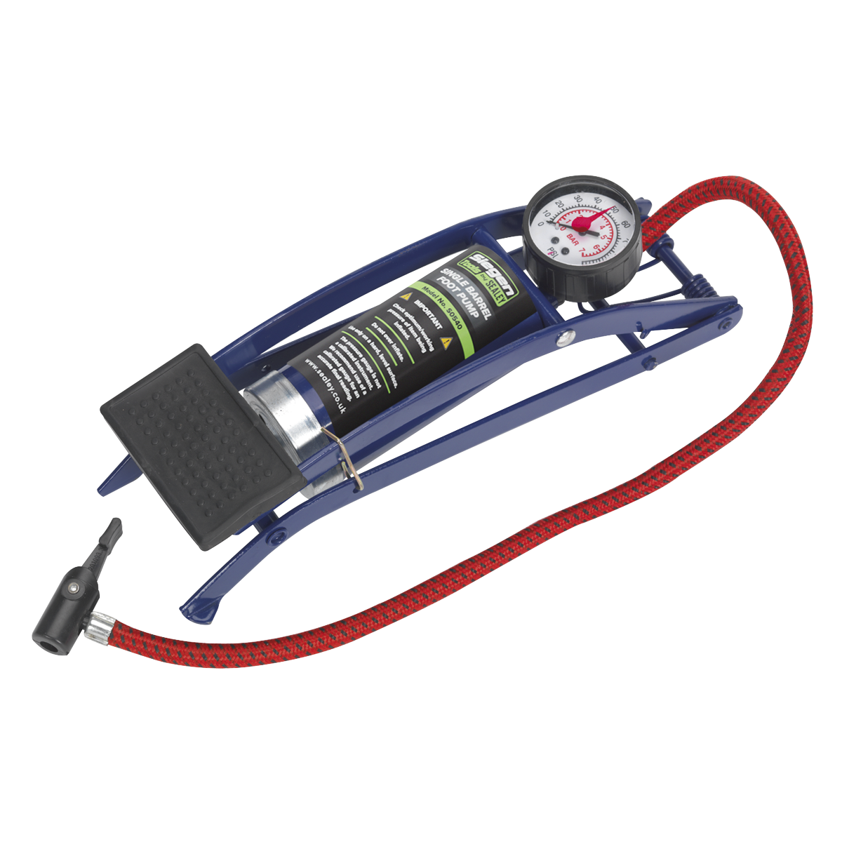 • Steel framed foot pump with Ø50 x 120mm steel barrel.