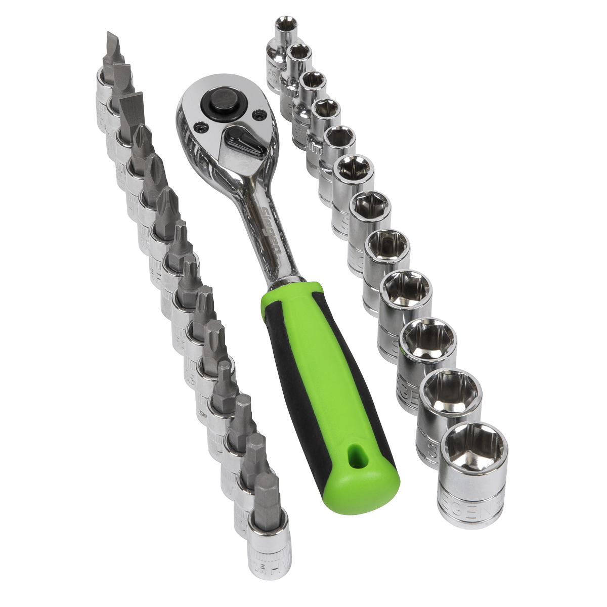 • Chrome Vanadium steel socket set, hardened and tempered for strength with a fully polished finish for corrosion resistance.