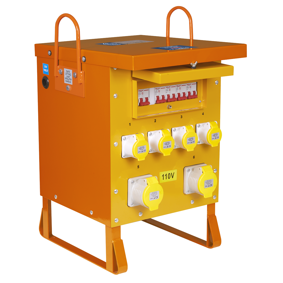 • 110V Transformer with tool rated performance suitable for intermittent running of power tools and continuous running of lighting products within specified capacity.