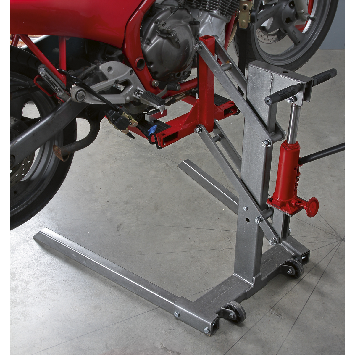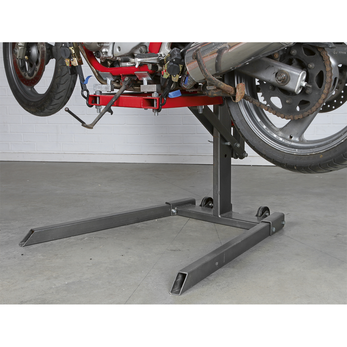 • Ideal for use with the Sealey range of wheel chocks to assist supporting the motorcycle, whilst adjusting the frame supports and securing to the lift.