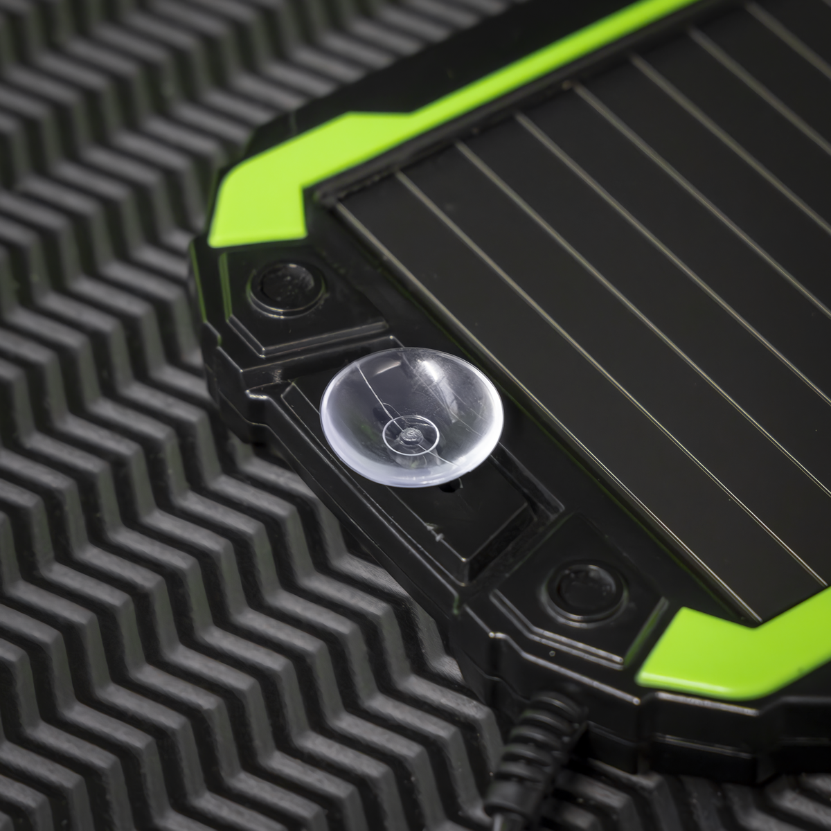 • Amorphous solar panels convert daylight directly into 12V electricity.
