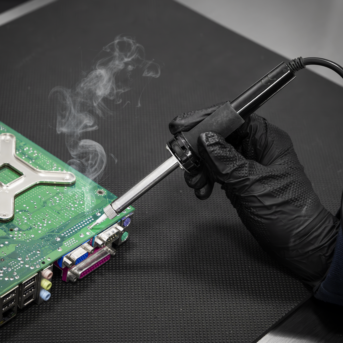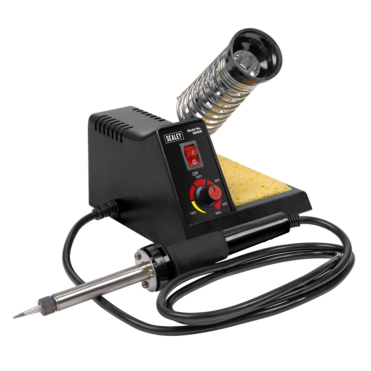 • Supplied with a metal soldering iron stand, tip sponge and replaceable tip.