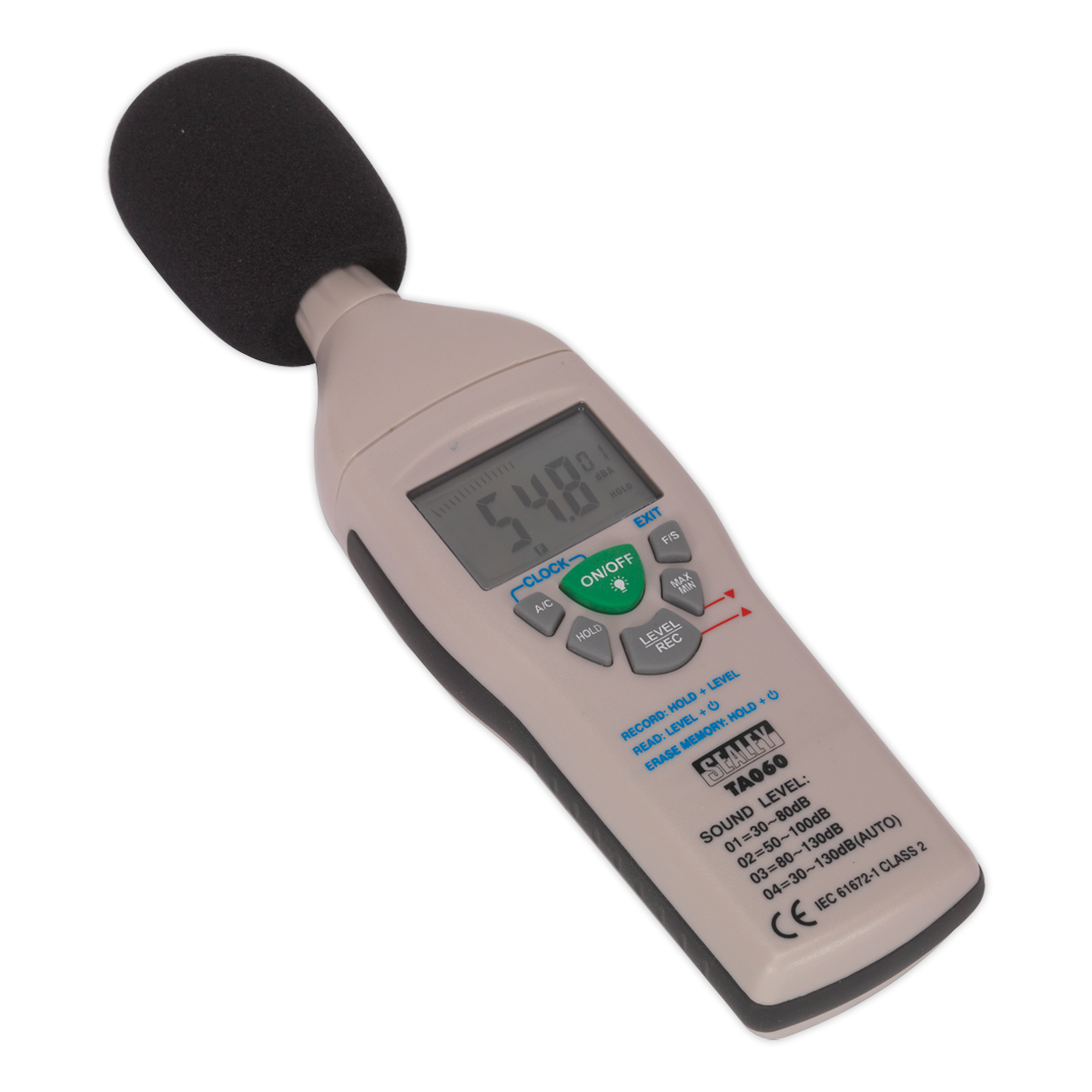 • Features min./max. measurements, over and under range, A and C weighting, fast and slow response, data-hold, record, digital read-out and bar graph with backlight.