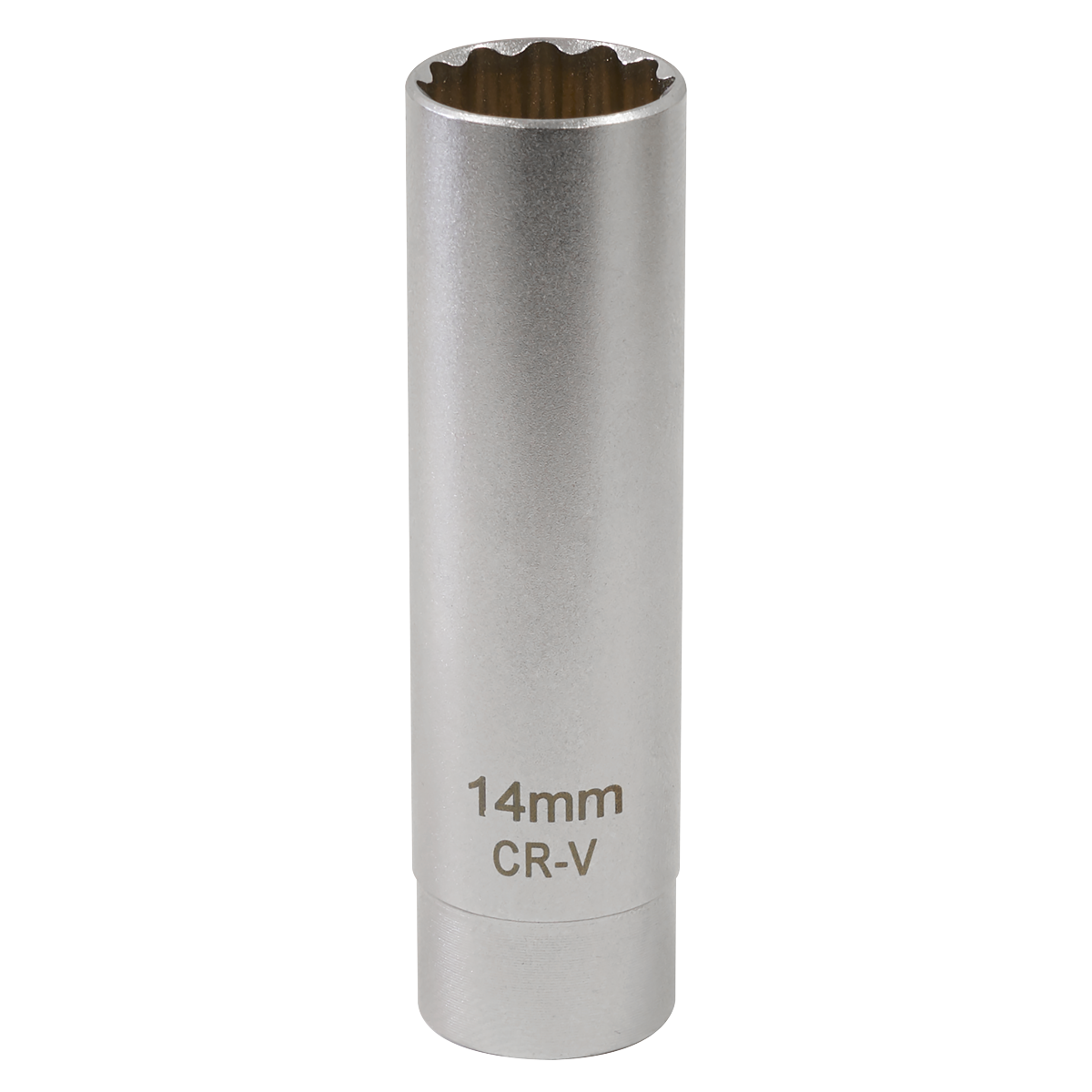 • Standard depth, thin wall, 12-point 3/8"Sq drive 14mm socket with magnetic insert to retain spark plug.