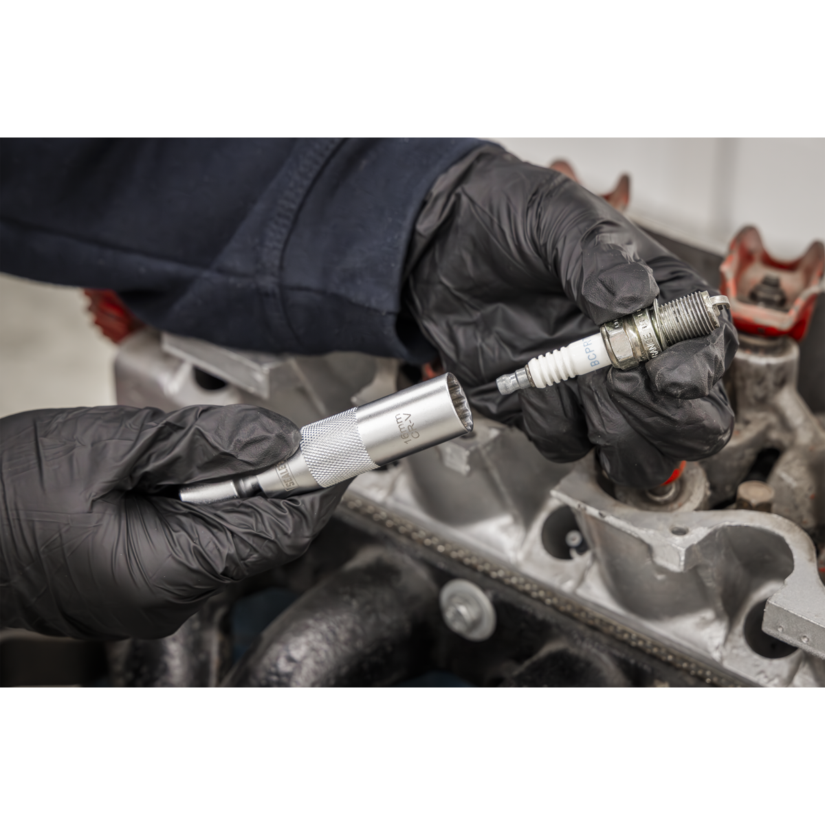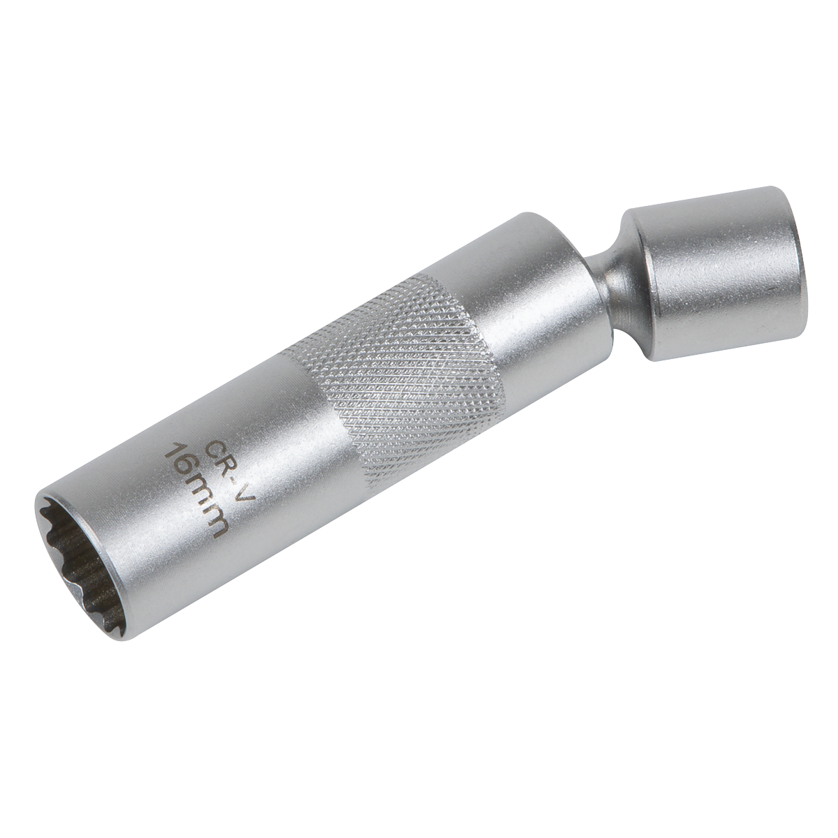 Spark Plug Socket with Universal Joint 3/8"Sq Drive 12-Point 16mm