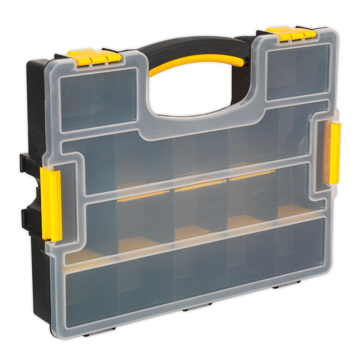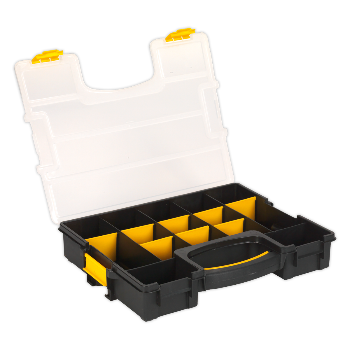 • Tough impact resistant polypropylene compartment case which can be stacked together by means of robust locking clips.