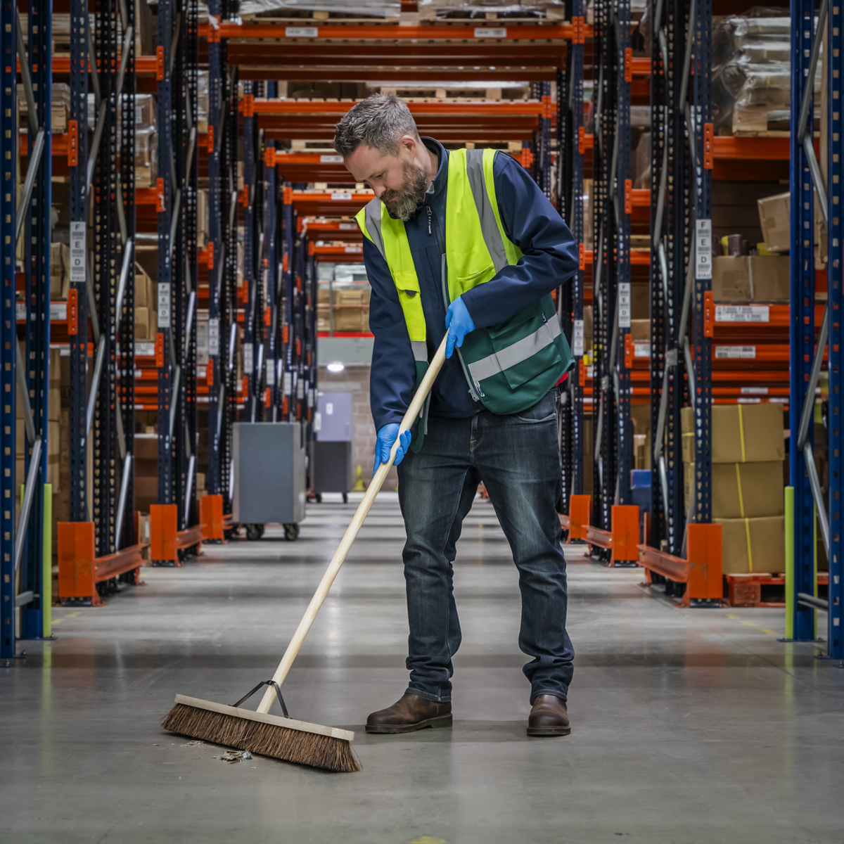 • HARD BRISTLE BROOM – Resilient stiff brush head, ideal for working outside.