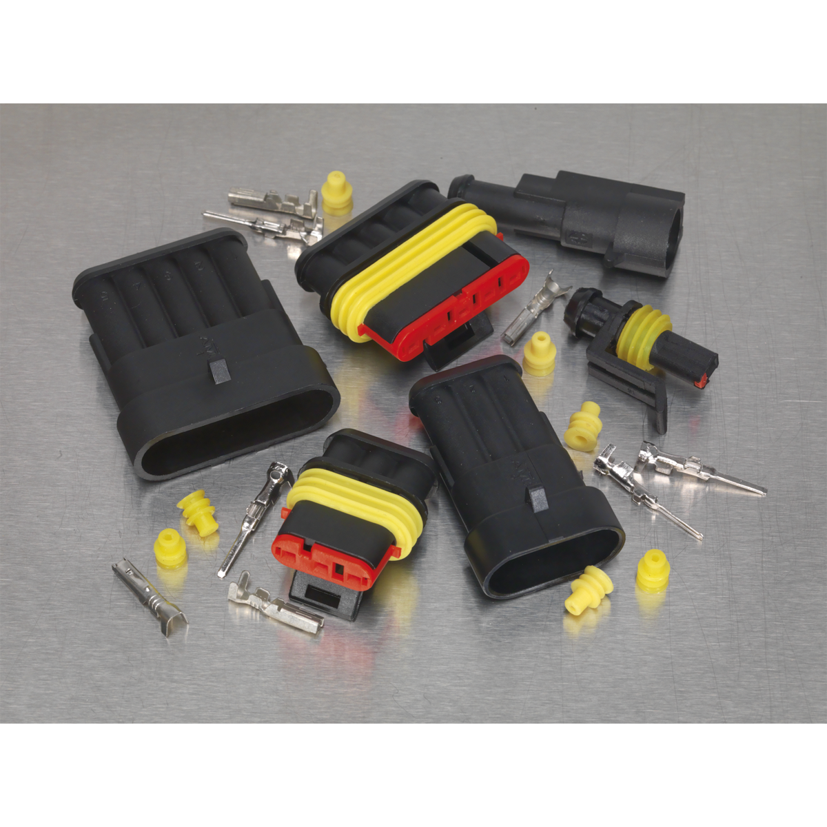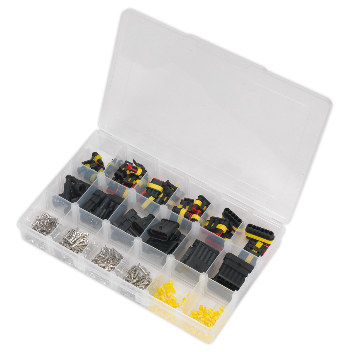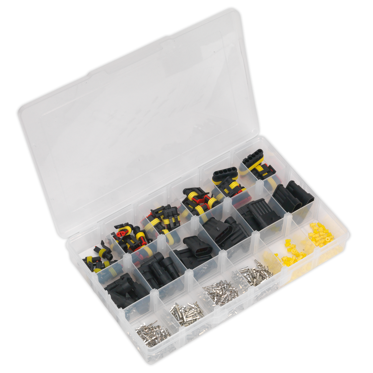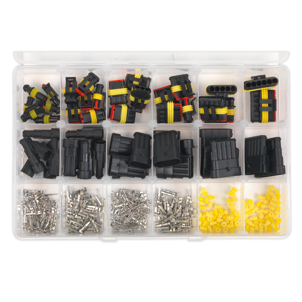 • Contents: 1-Way Female Connector (x6), 1-Way Male Connector (x6), 2-Way Female Connector (x6), 2-Way Male Connector (x6), 3-Way Female Connector (x4), 3-Way Male Connector (x4), 4-Way Female Connector (x4), 4-Way Male Connector (x4), 5-Way Female Connector (x3), 5-Way Male Connector (x3), 6-Way Female Connector (x2), 6-Way Male Connector (x2), Rubber Seal (x100), Female Pin (x100), Male Pin (x100).