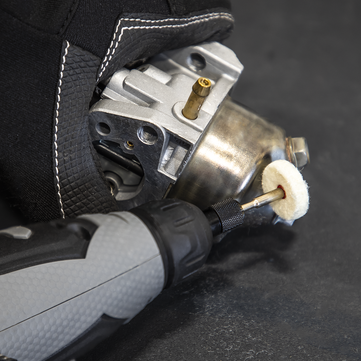 • Supplied with a 50-piece range of tips, wheels, discs, dressing stones and a chuck spanner.