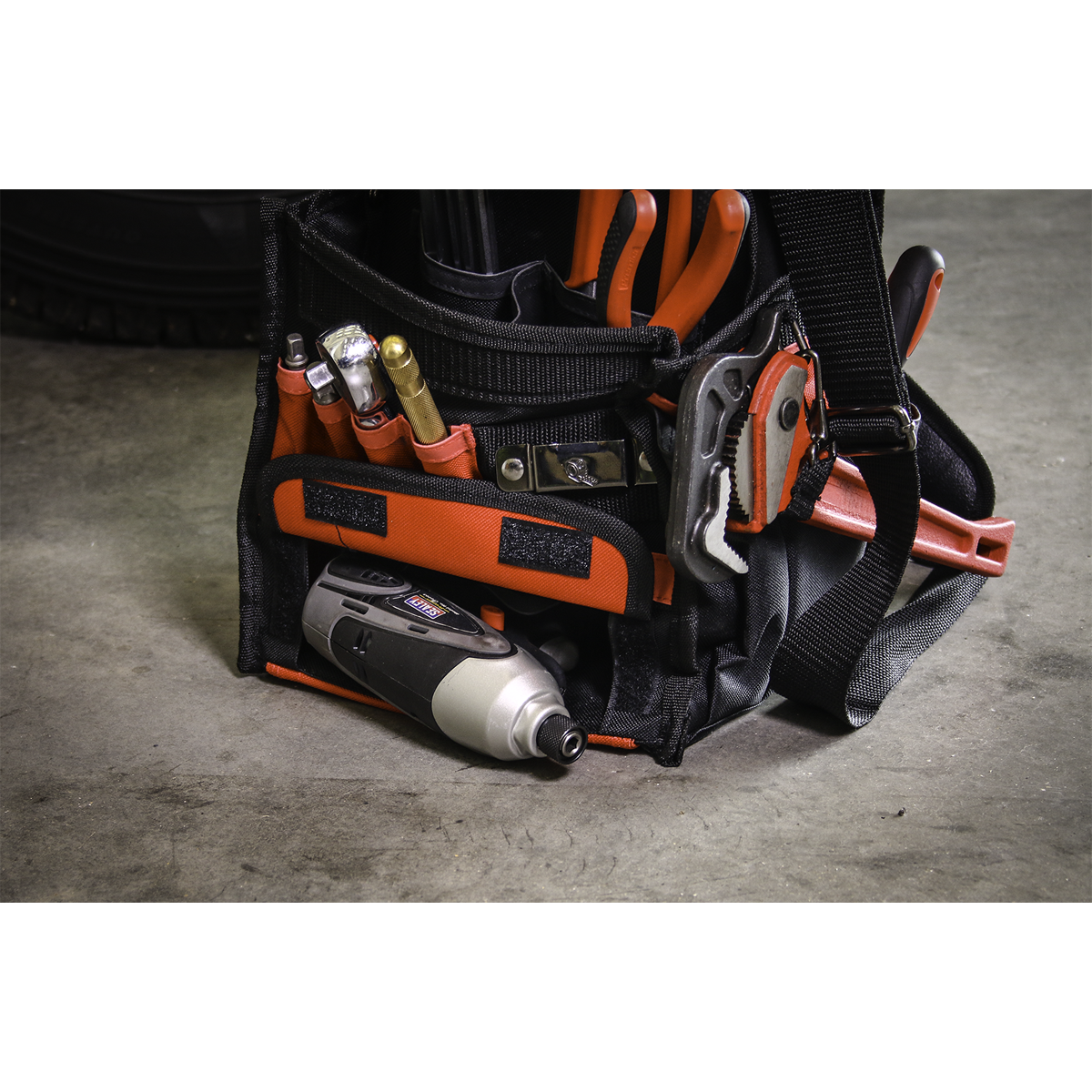 • Tool bag features a measuring tape clip, hanging loop clip and 26 internal and external pockets allowing a wide range of tools and equipment to be stored, whilst remaining ready for use.