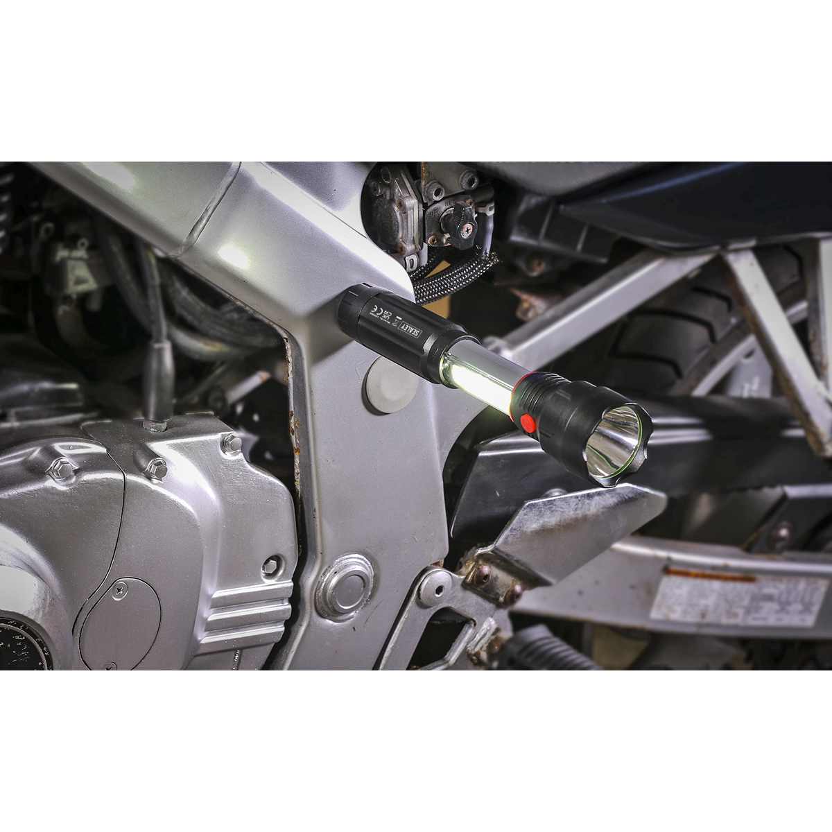 • Features a powerful 3W LED directional torch and, by extending the body of the torch, an automatic on/off 3W COB LED inspection lamp.