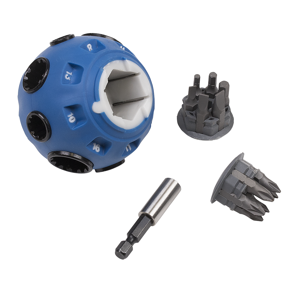 • Metric Socket Sizes; 8, 10, 11, 13, 14, 16, 17mm, Imperial Socket Sizes; 5/16", 3/8", 7/16", 1/2", 9/16", 5/8", 11/16", TRX-Star*; E10, E12, E14, E16, E18, E20, E22, Spline; M10, M12, M14, M16, M18, E20, M22, 1/4"Hex Bits; Slotted - 6, 5, 4mm, Phillips - #0, #1, #2, Pozi - #0, #1, #2, Hex - 3, 4, 5mm, Magnetic Extension Bar/Bit Holder.