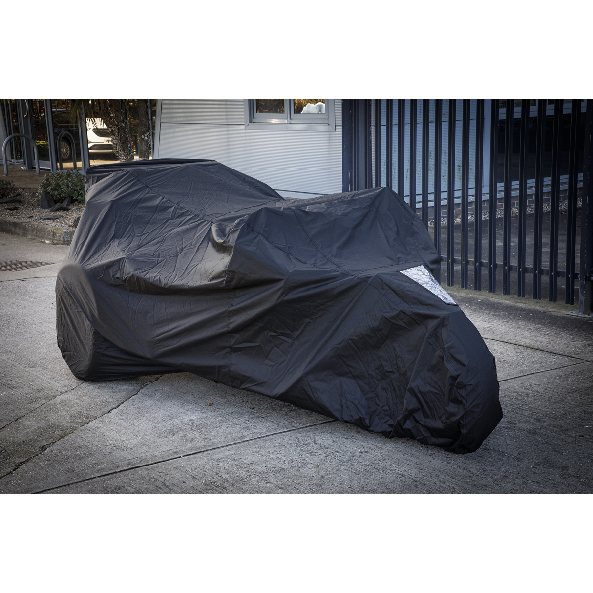 • Has a clear PVC pocket to accept Model No. SPP01 Solar Panel (requires Model No. SPP01.A Adaptor) to enable battery charging while cover is fitted to the motorcycle without the need for mains power supply.