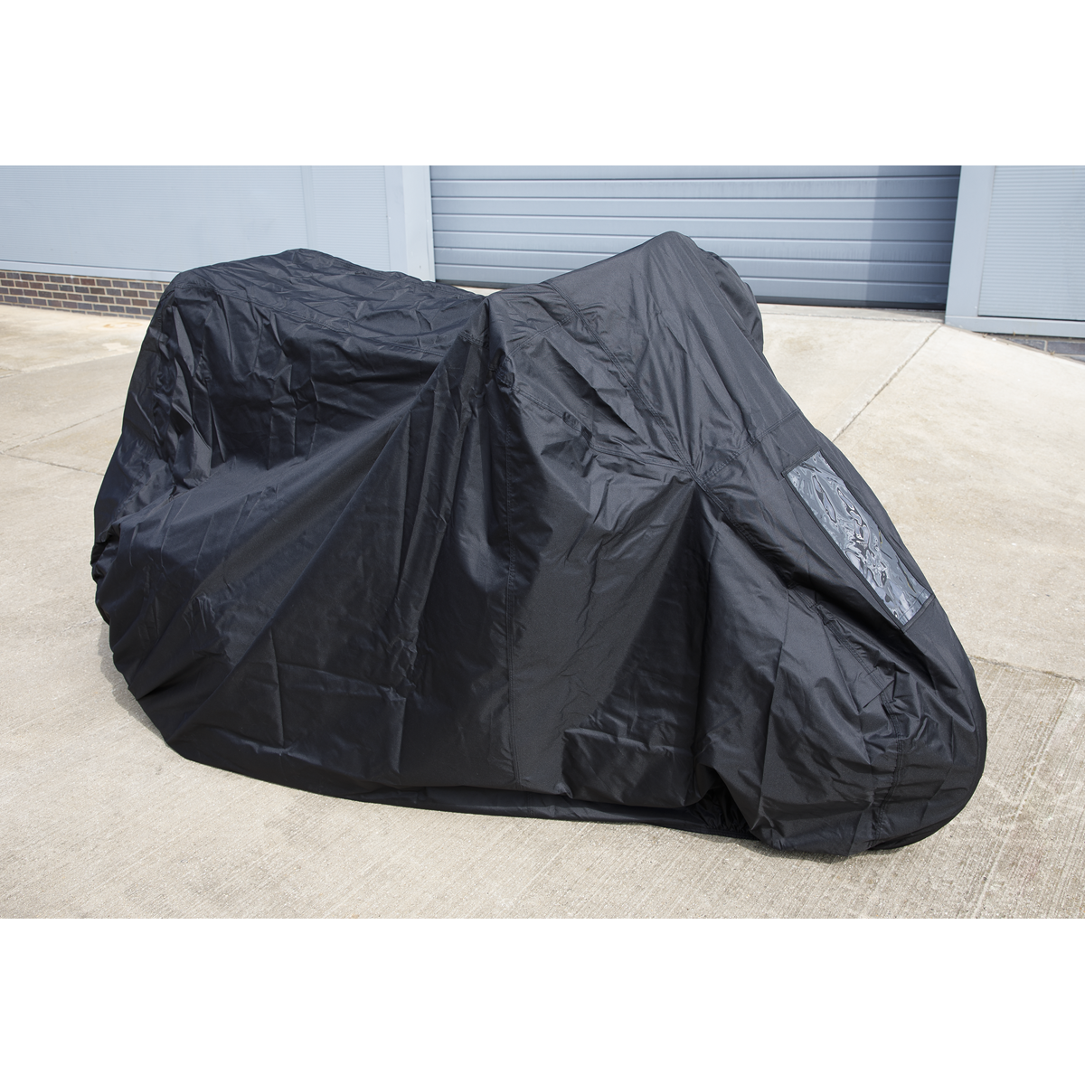 • Has a clear PVC pocket to accept Model No. SPP01 Solar Panel (requires Model No. SPP01.A Adaptor) to enable battery charging while cover is fitted to the motorcycle without the need for mains power supply.