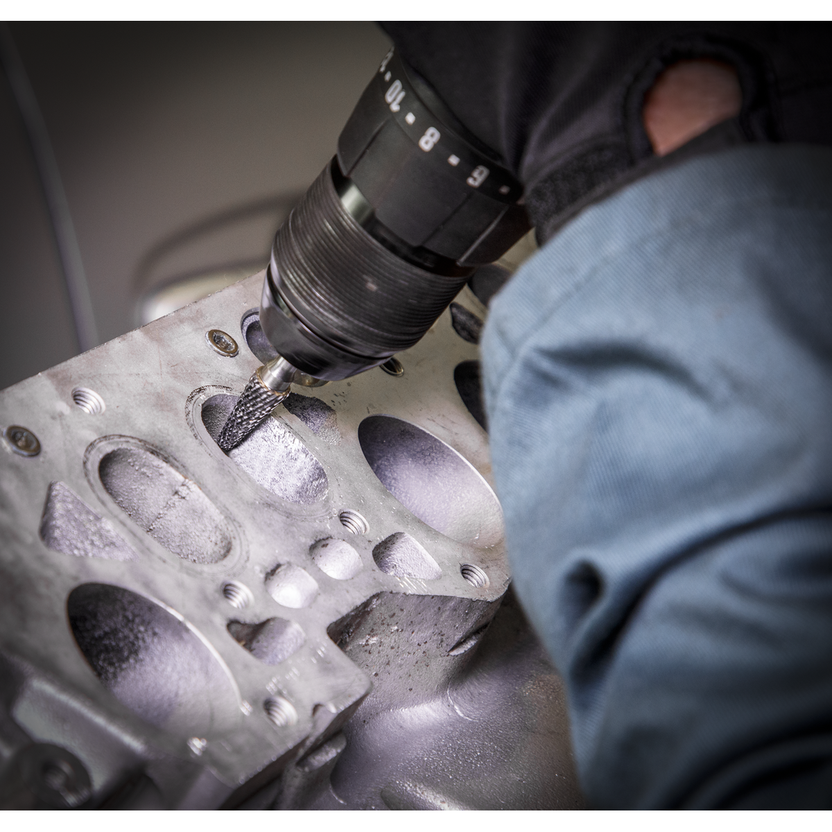 • 5pc Set of Ø10mm No. 6 cut (universal) Tungsten Carbide burrs.