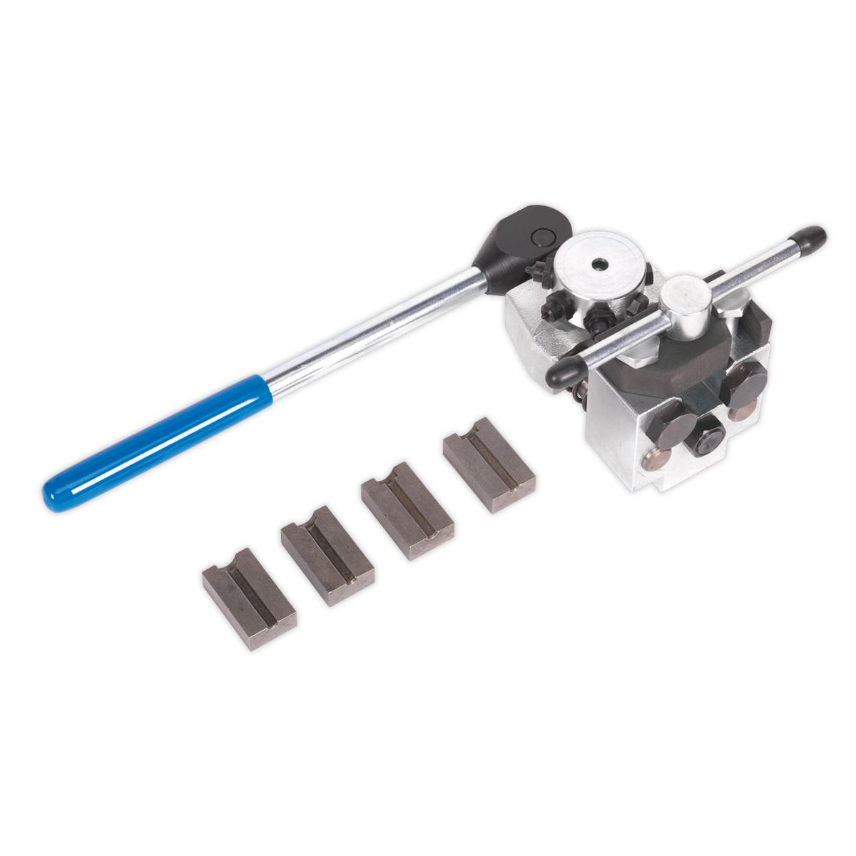 • Supplied with 4.75mm, 3/16", 1/4", 5/16" and 3/8" dies and 4.75mm, 3/16", 1/4", 5/16" clamp blocks for forming most popular flares.