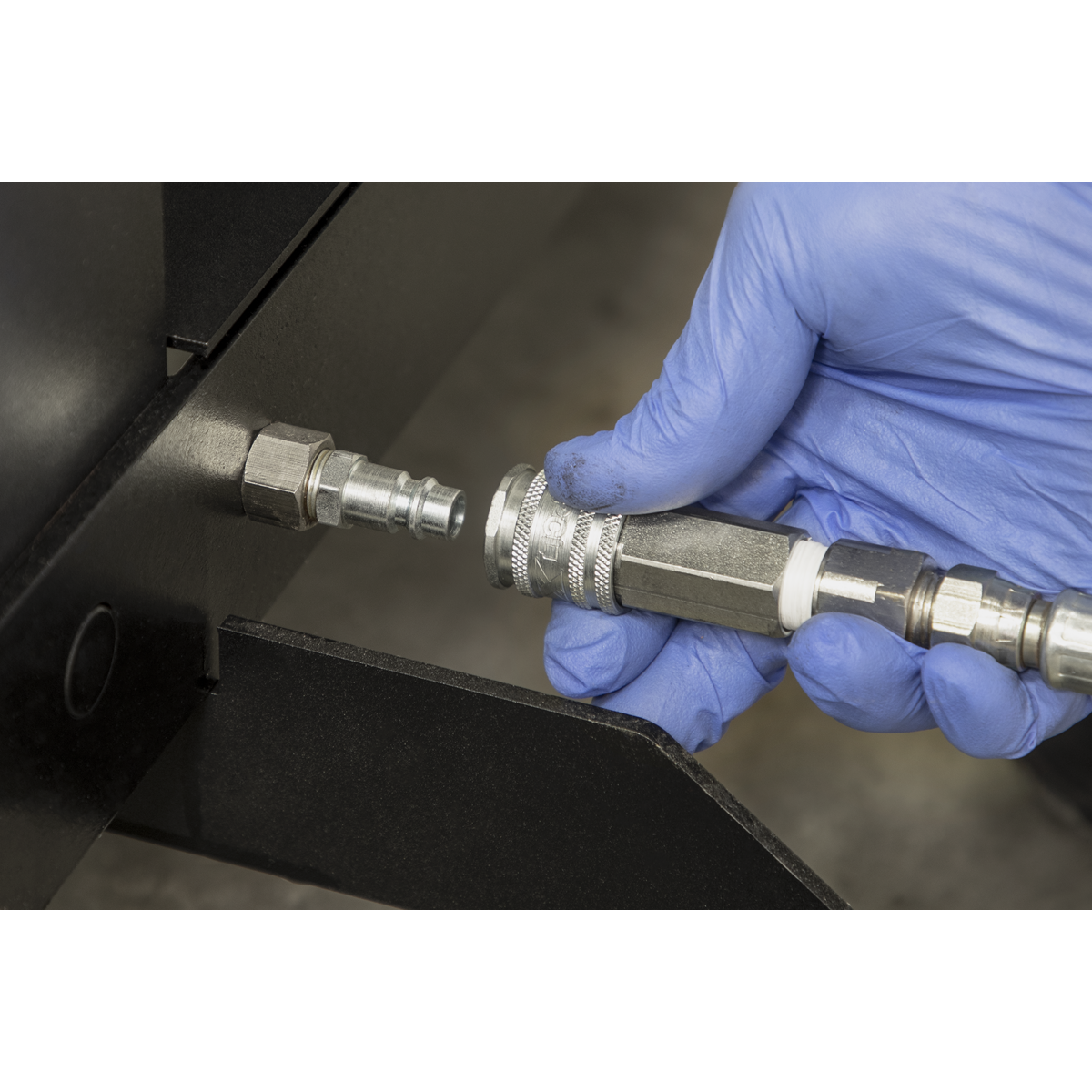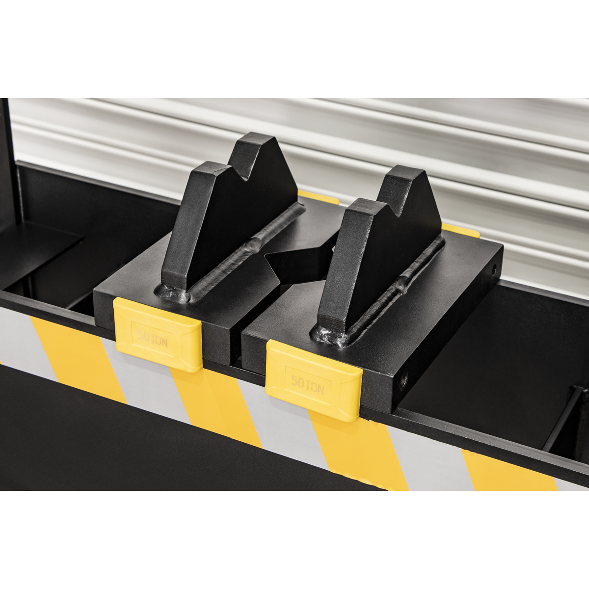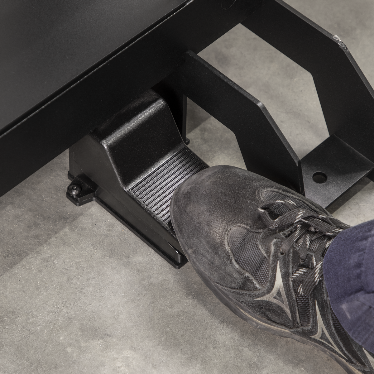 • Heavy-duty steel frame construction with integral air motor powering hydraulic pump unit.