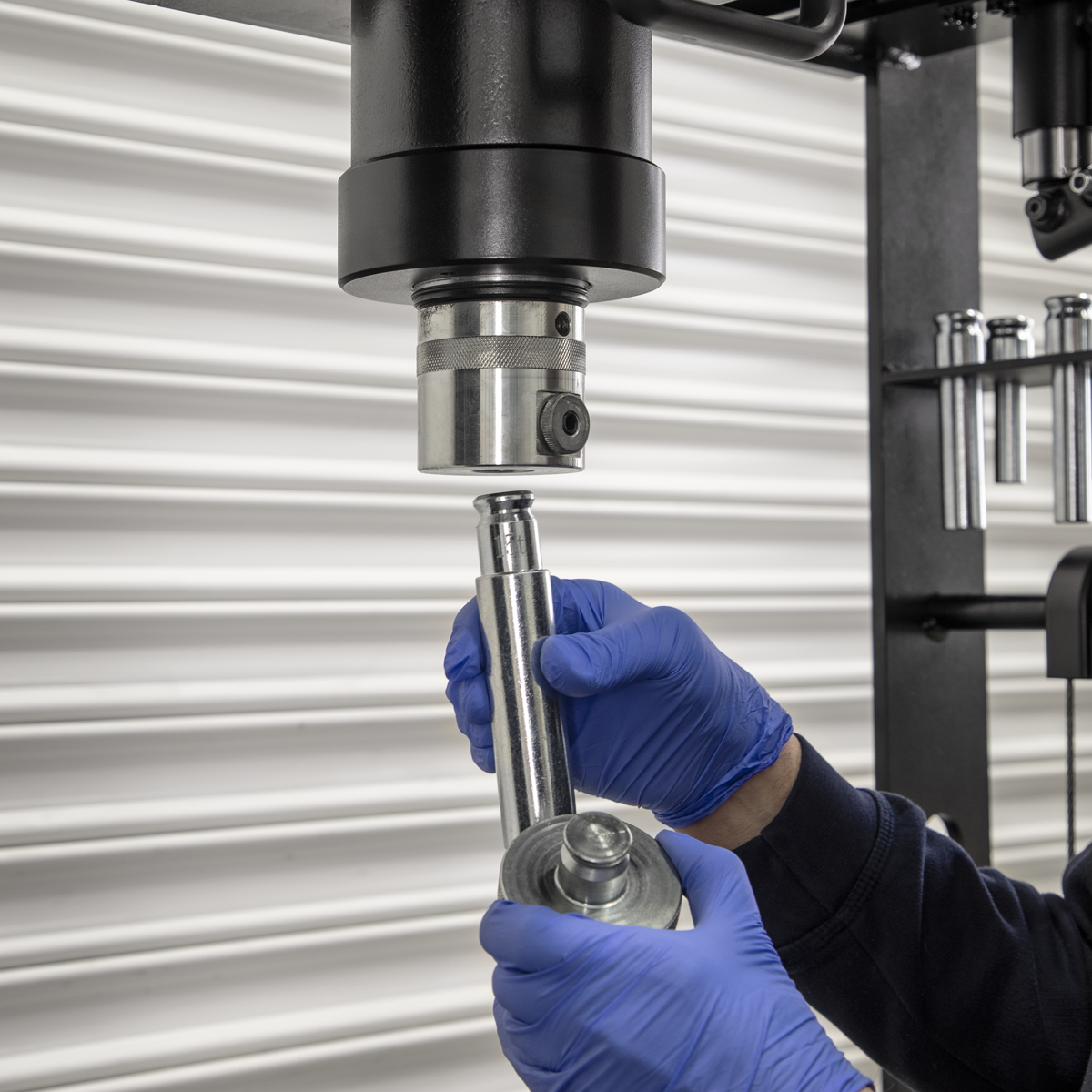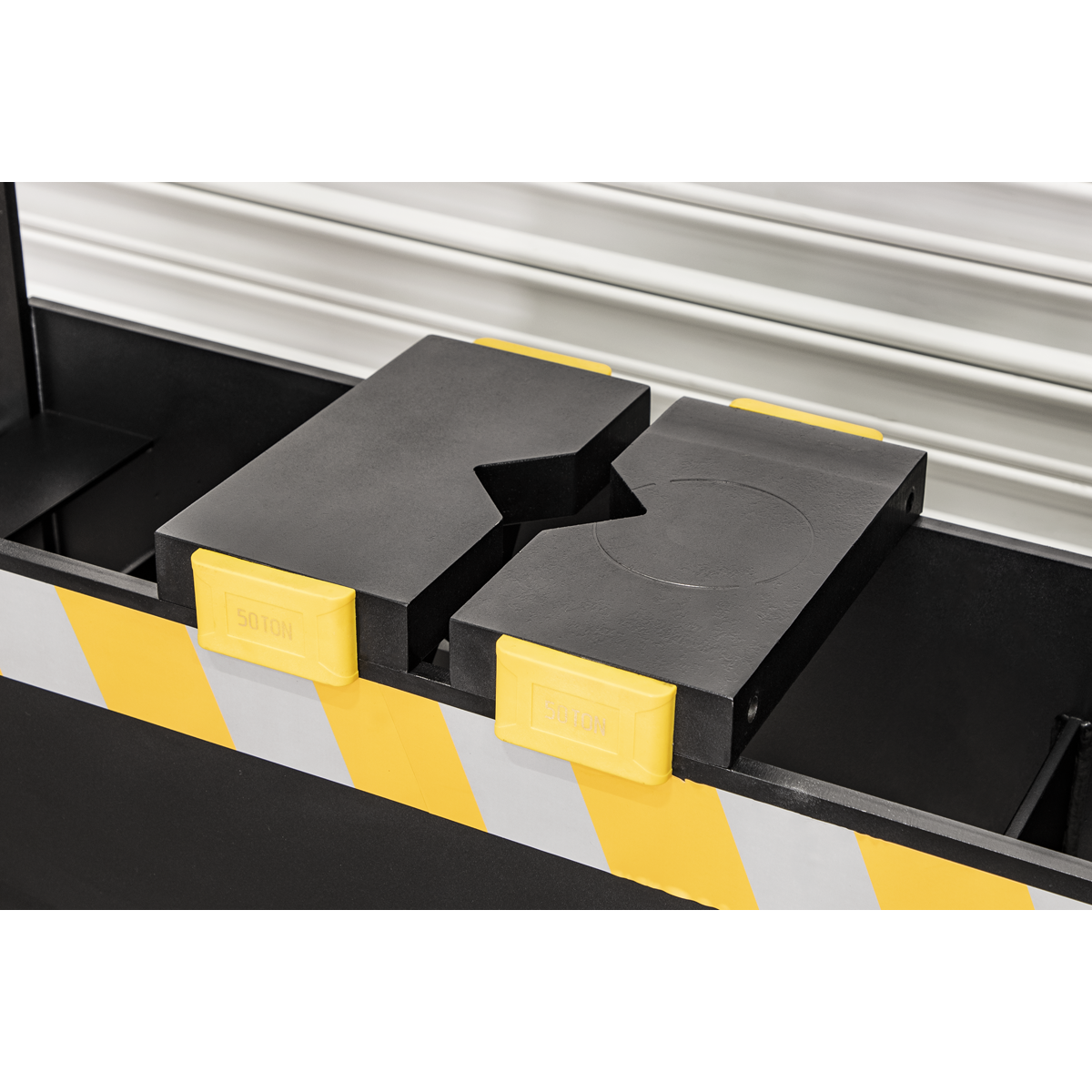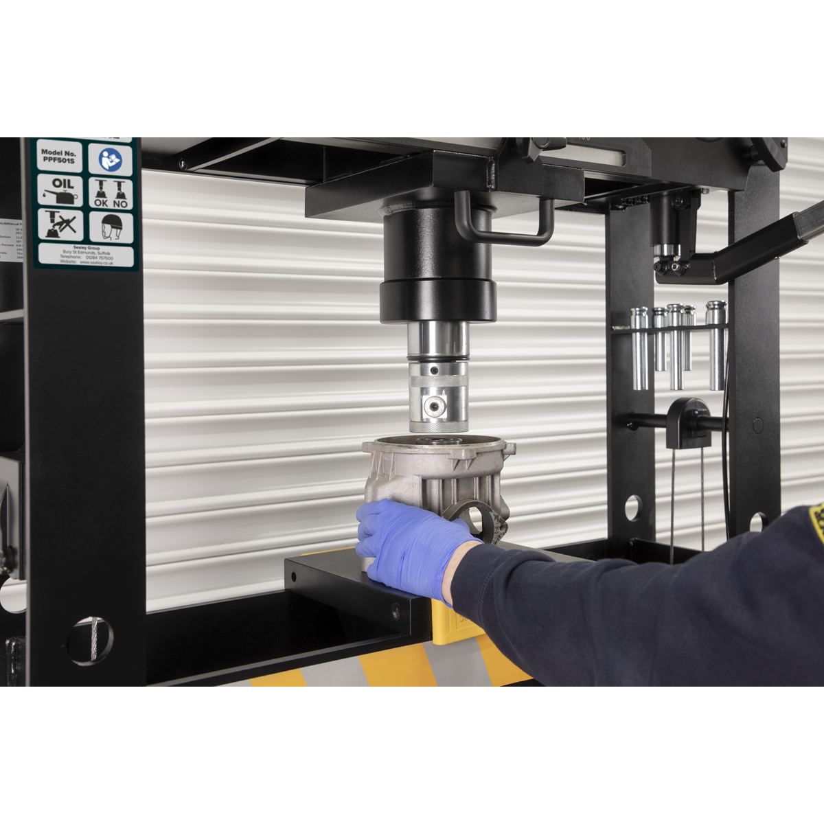 • Sliding hydraulic ram assembly giving 280mm of lateral travel for off-centre pressing applications.