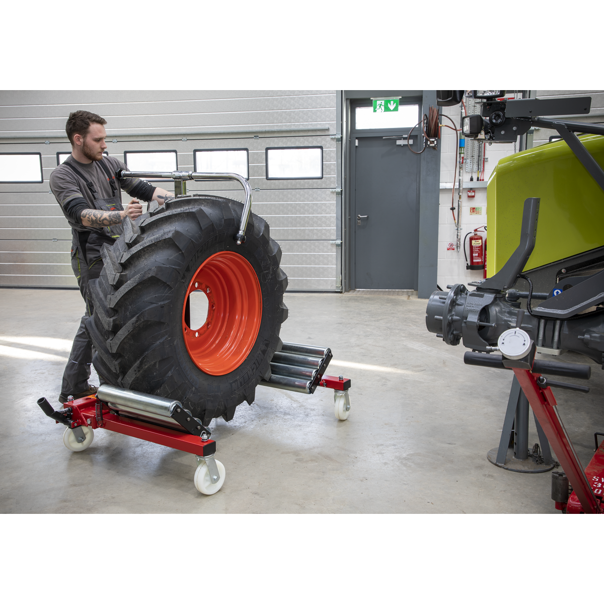• Eight adjustable rollers (four each side), allow for easy turning of large deep tread tyres.