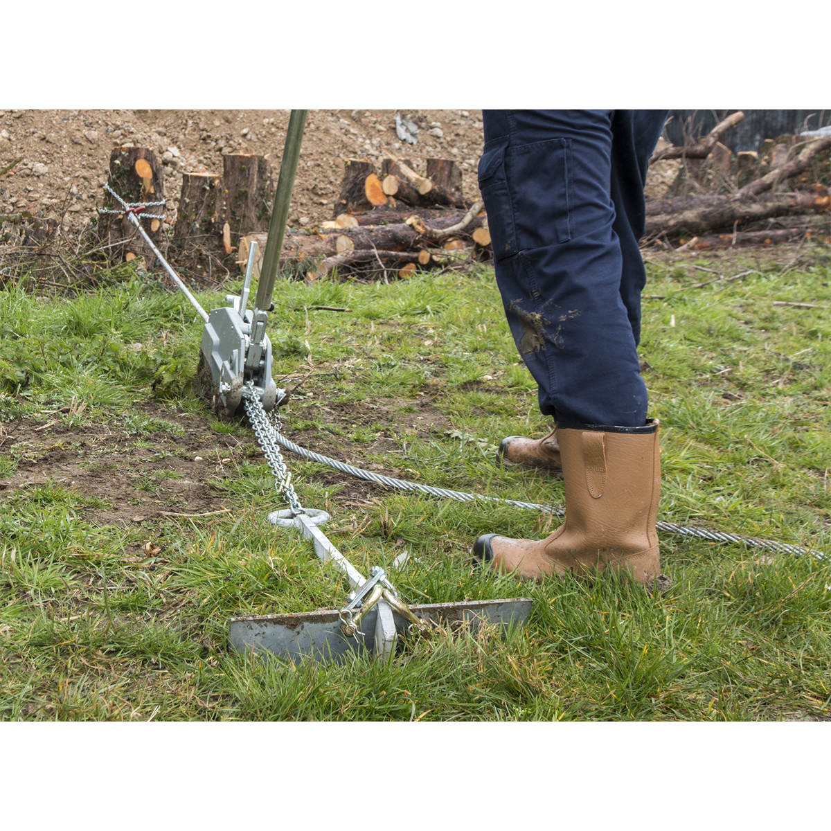 • Supplied with removable lever handle and 20m wire rope with heavy-duty hook.