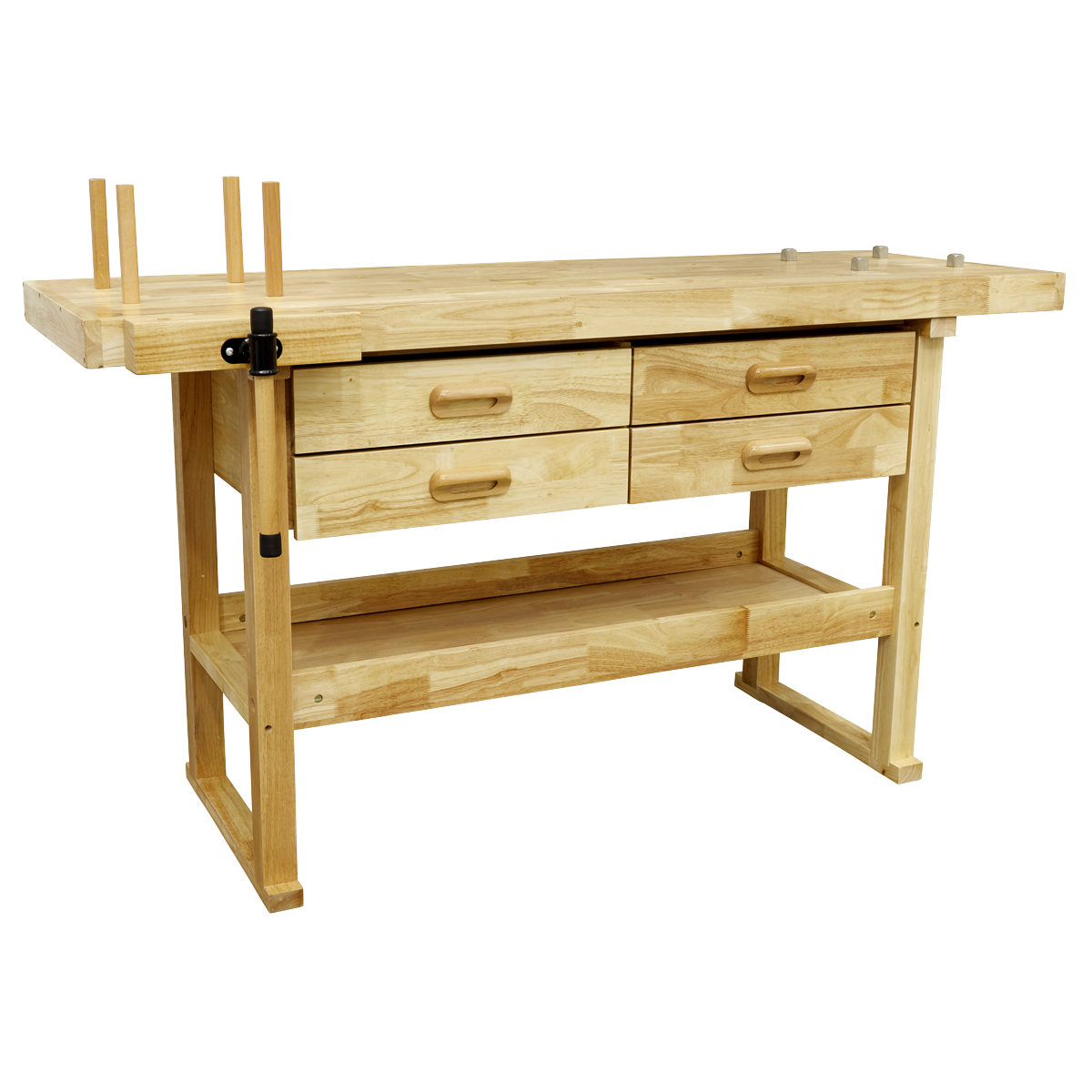 • Features tool well, shelf, four tool drawers, front vice, four metal bench stops and four wooden board jacks.