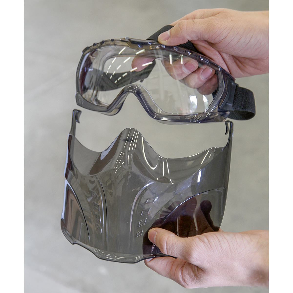 • Offers full face protection with an increased range of mobility compared to a standard face protector.