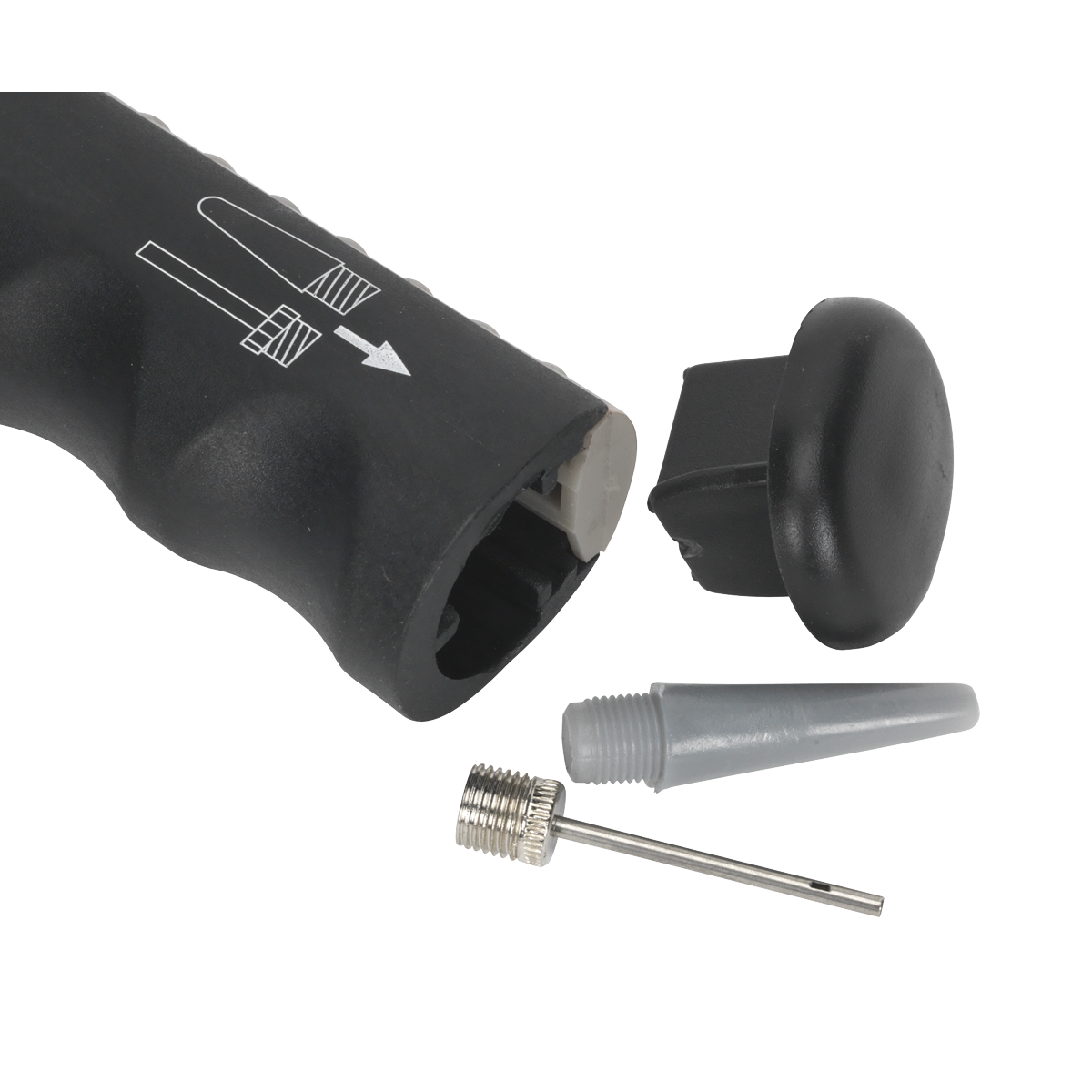 • Supplied with accessories for inflating items such as small inflatable boats, air beds and balls stored in a compartment located in the handle.