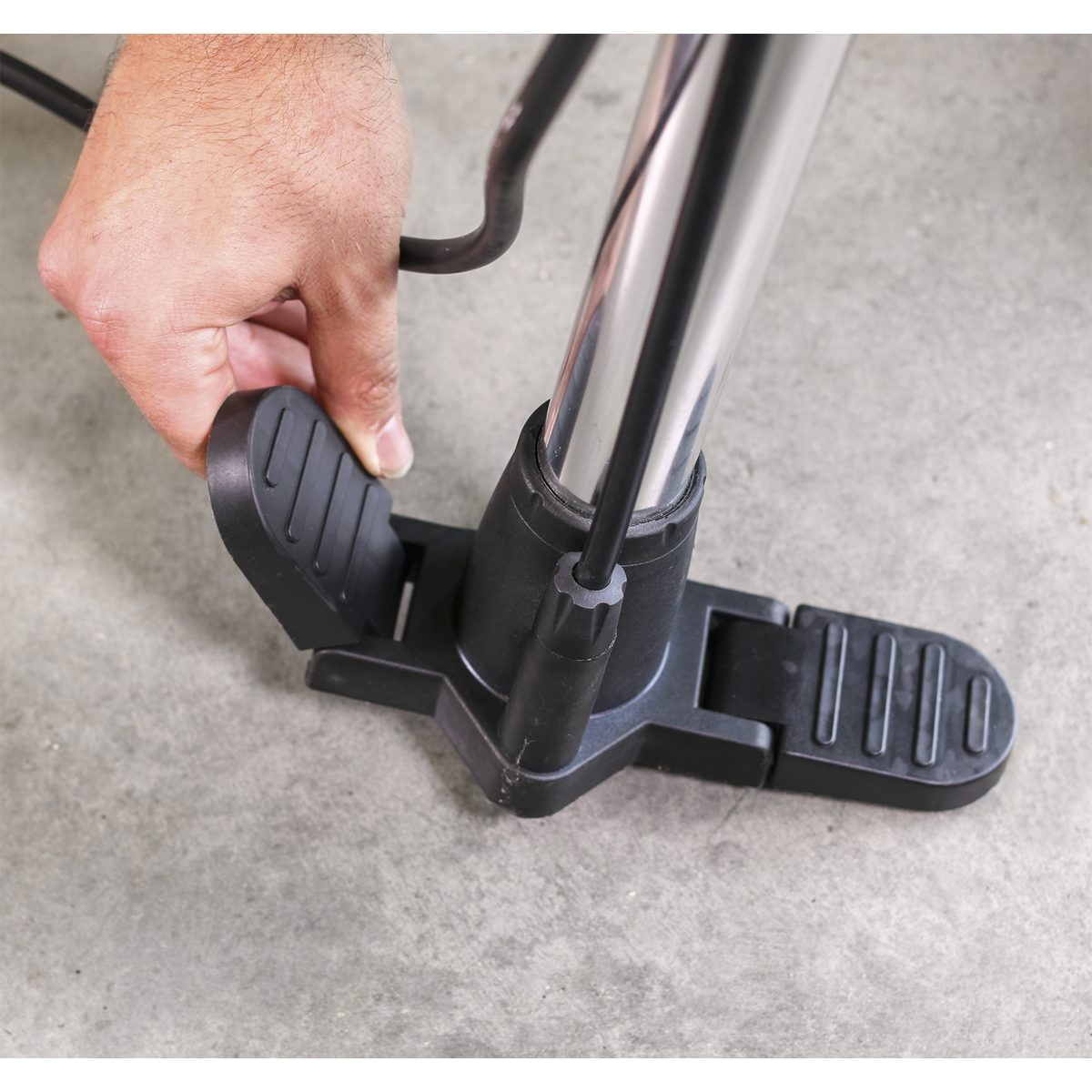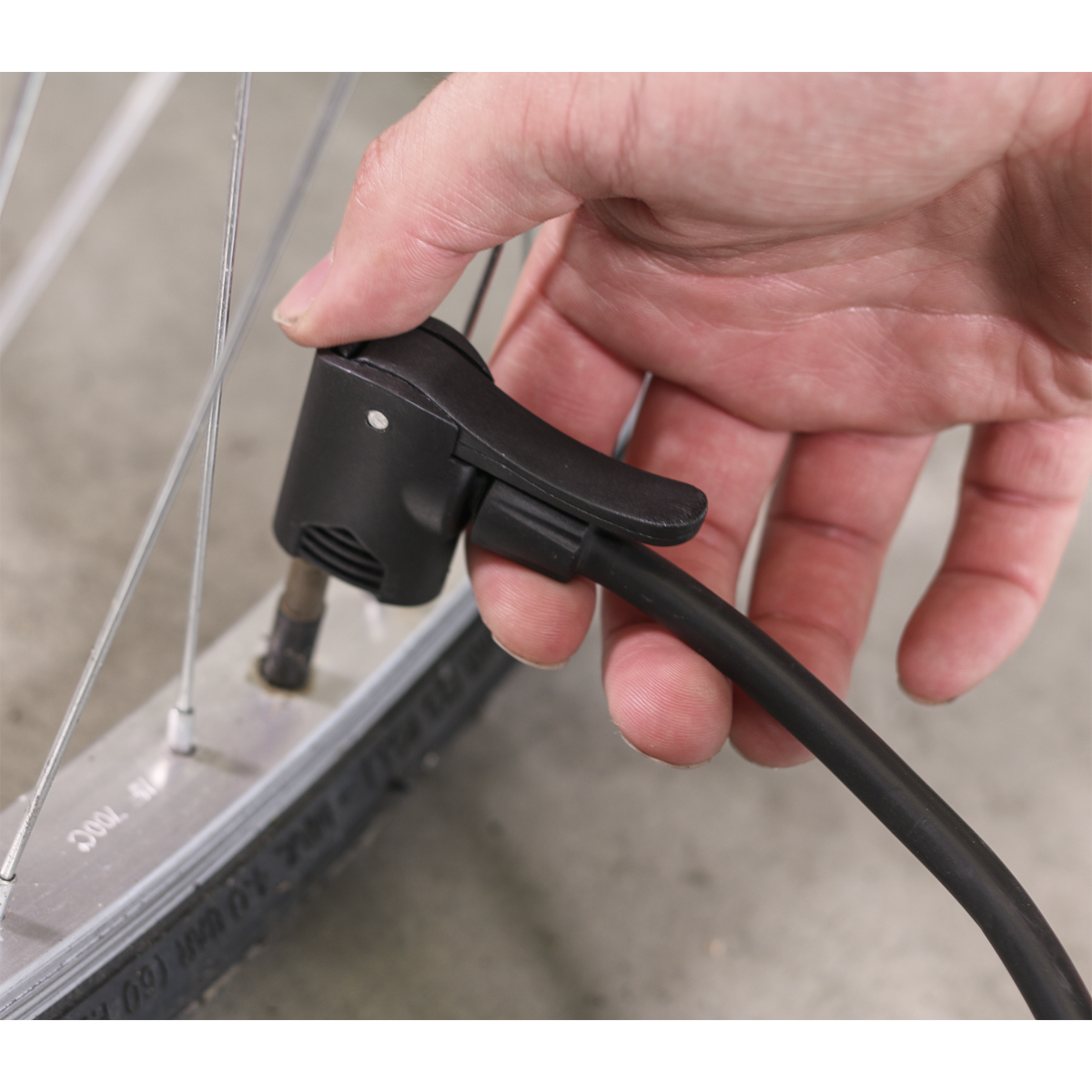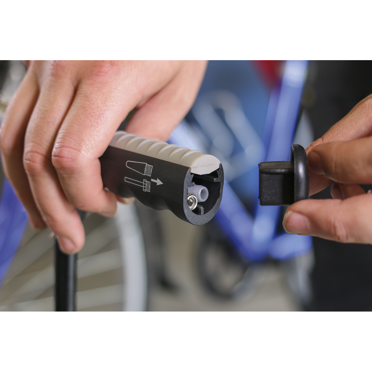 • Fitted with twin head for both Presta and Schrader valves and a 360° rotatable hose.